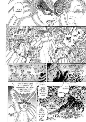 Warrior supreme Guts has been marked for sacrifice to the armies of the damned, and now he has the blood of a village of possessed children on his hands — a horde of elf-demons straight out of a fairy-tale fever dream. But now Guts must deal with the Queen of the Elves herself, and though she may be cute as a button, she has hideous power and lethal intent, and in her wake, no one lives happily ever after! FOR MATURE READERS.