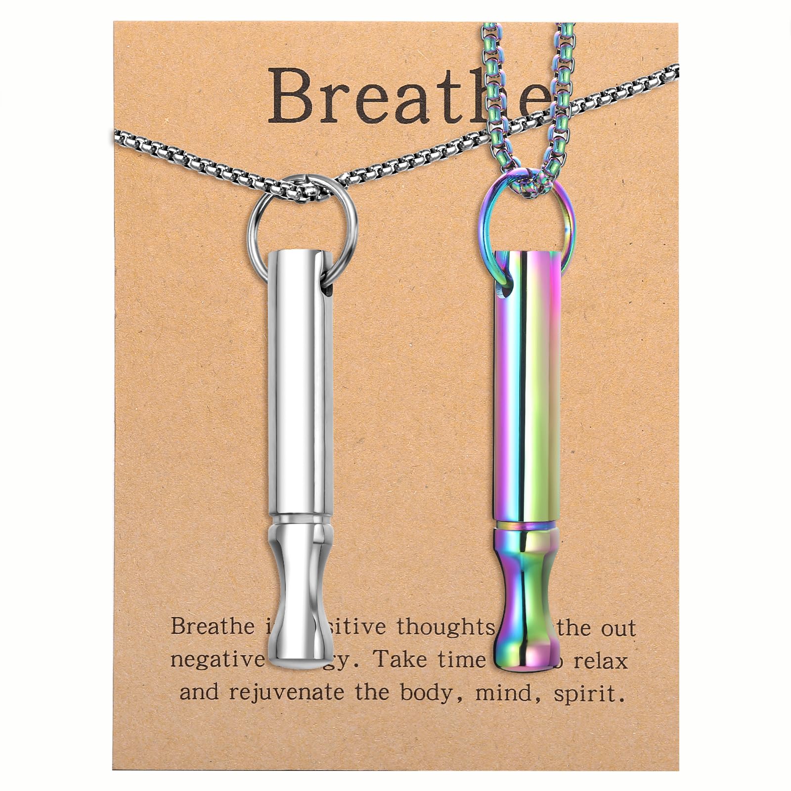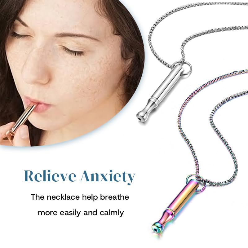MINDFULNESS BREATHING NECKLACE: Take a slow inhale through your nose for 4 seconds, hold for 7 seconds, then exhale slowly using the breathing tool for 8 to 10 seconds. Repeat for several cycles. This breathing technique will naturally calm your body and mind.