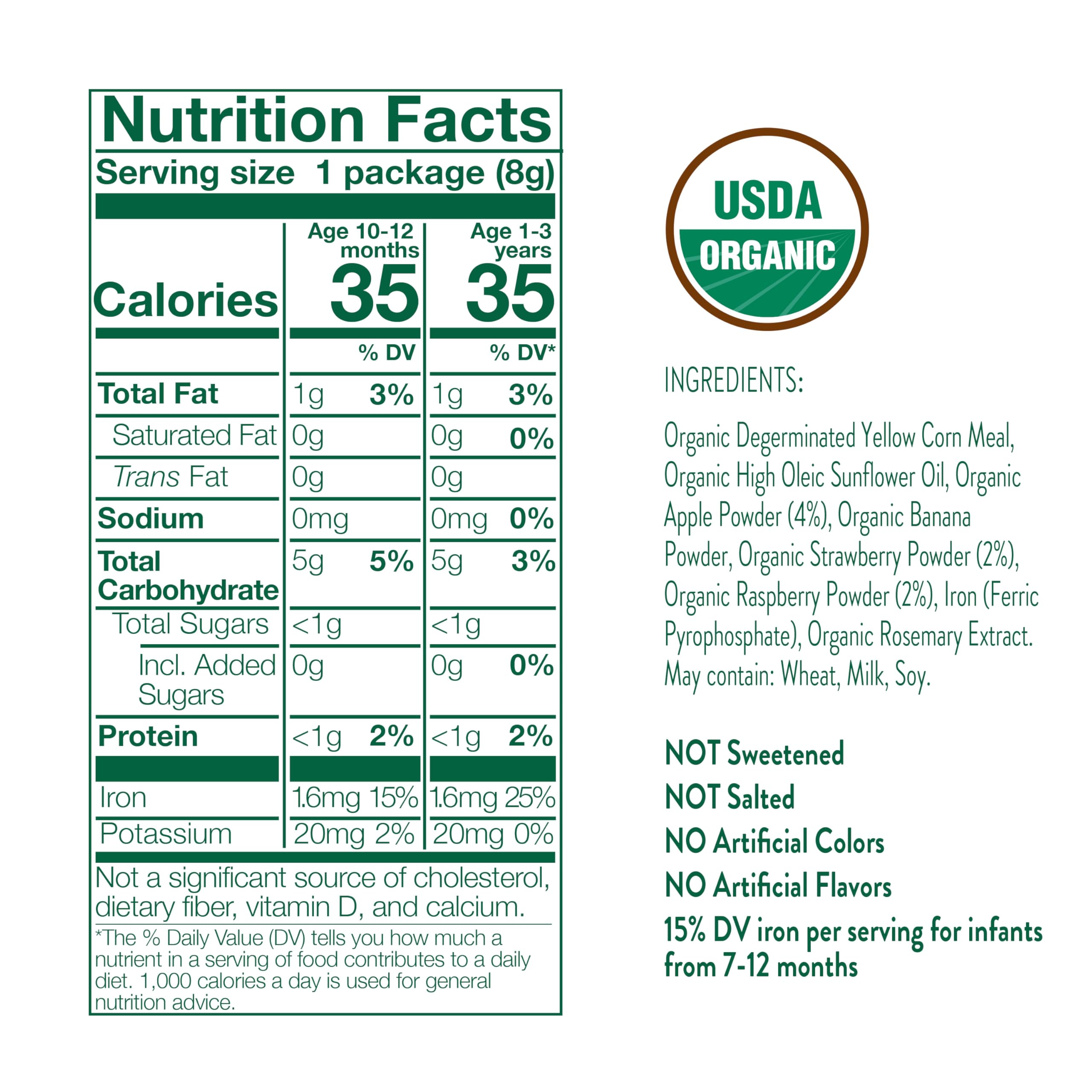Always natural and wholesome — We only use natural food ingredients that you can recognize such as fruit and vegetable powders, lentils and grains. All our products are non-GMO, free from artificial colors, flavors or additives