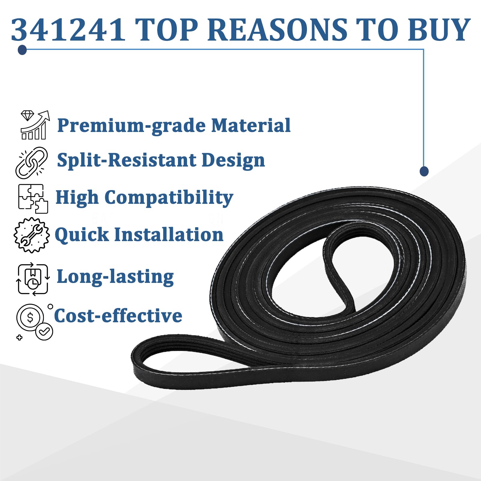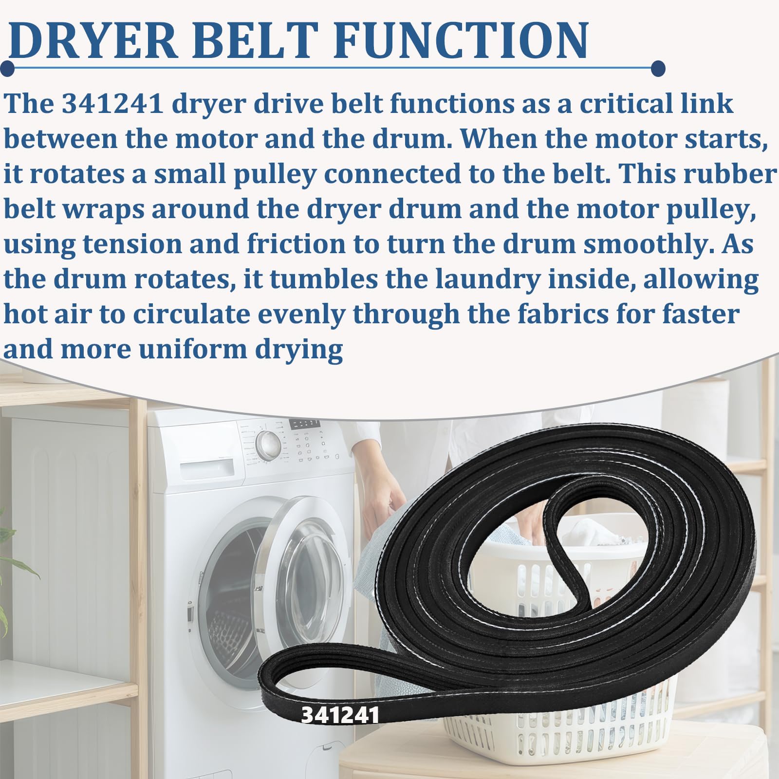 High-Performance-- Crafted from high-quality sturdy rubber, the 341241 dryer drum drive belt offers exceptional flexibility, strength, and wear resistance for reliable and long-lasting performance