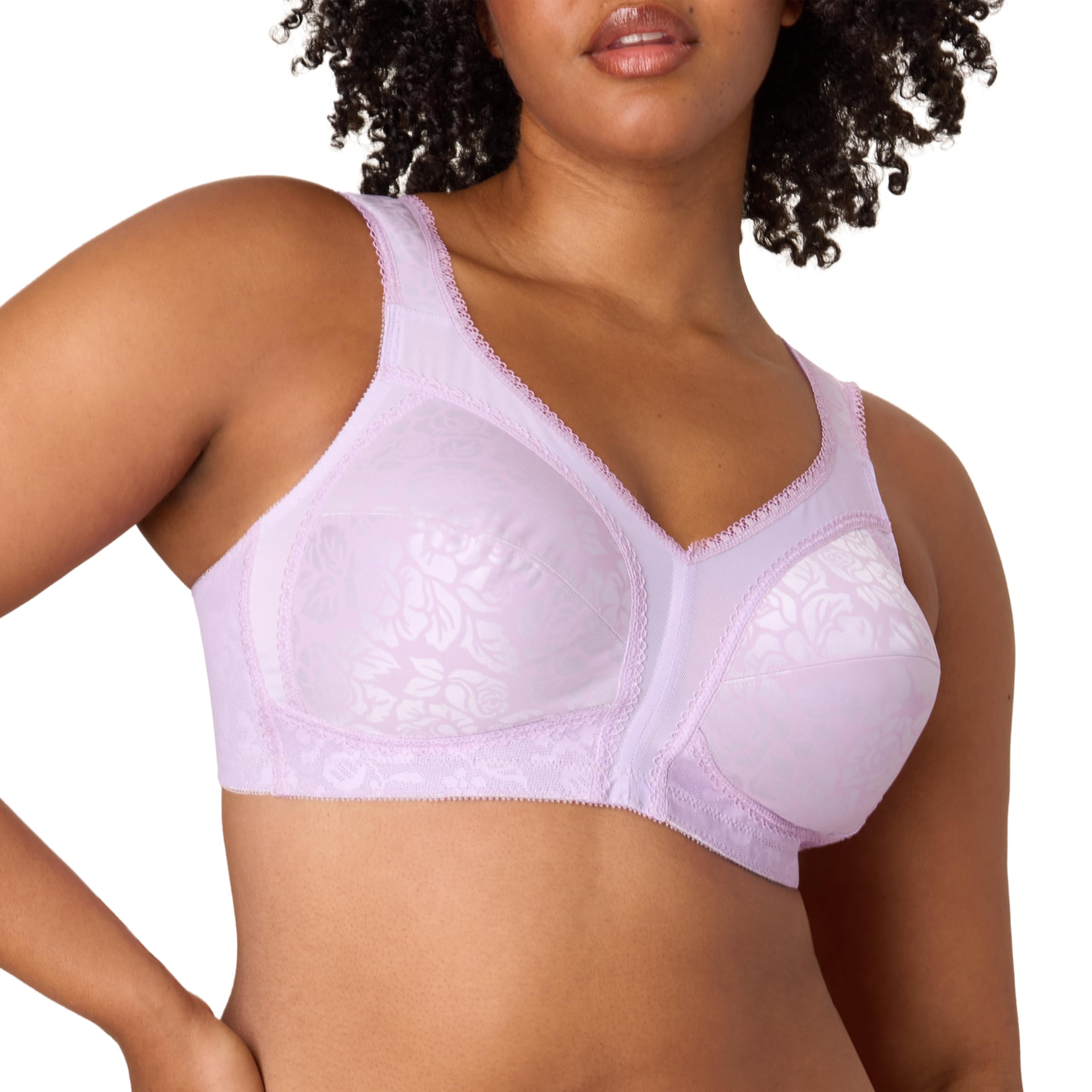 Description Get the lift you want, the support you need, and the wireless comfort you deserve with the Playtex® 18 Hour® Wireless Lift Bra. Designed for all-day wear, this full-coverage bra for women features Magic Rings® panels that shape and support without wires. The non-foam cups provide a natural lift while keeping you comfortably supported from morning to night. Cool Comfort® moisture-wicking jacquard fabric helps you stay cool and dry in any season. Cushioned, no-slip straps reduce shoulder pressure and stay in place as you move. The TruSUPPORT® system offers targeted support through the cups, sides, and back for a smoothing effect under clothes. Available in pretty floral and animal prints, this women's wirefree bra is the perfect blend of style and everyday function. Whether you’re heading to work or relaxing at home, this wireless lift bra keeps you feeling confident and supported all day long.