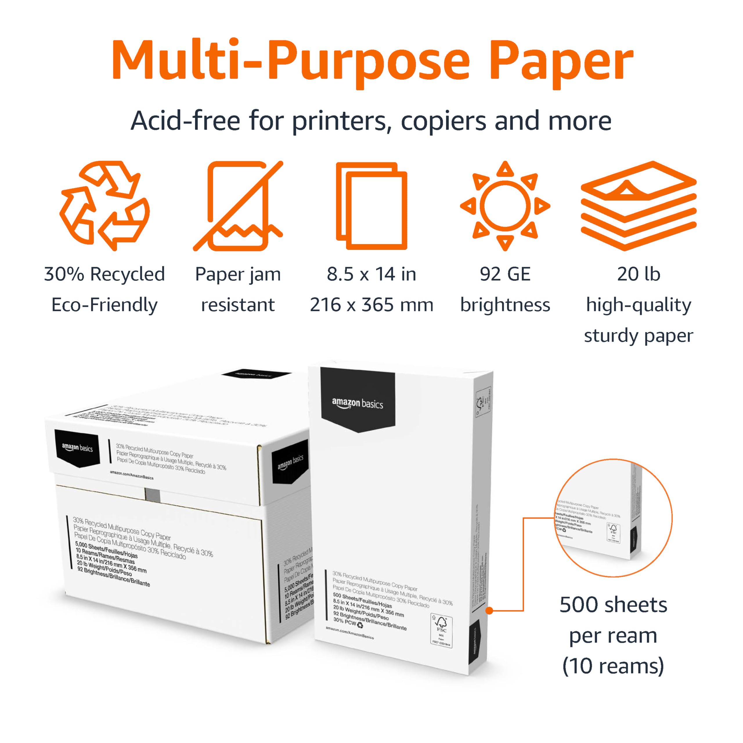 10 Reams of 8.5 x 14-inch legal-size 30% recycled multipurpose copy paper (5,000 sheets total)