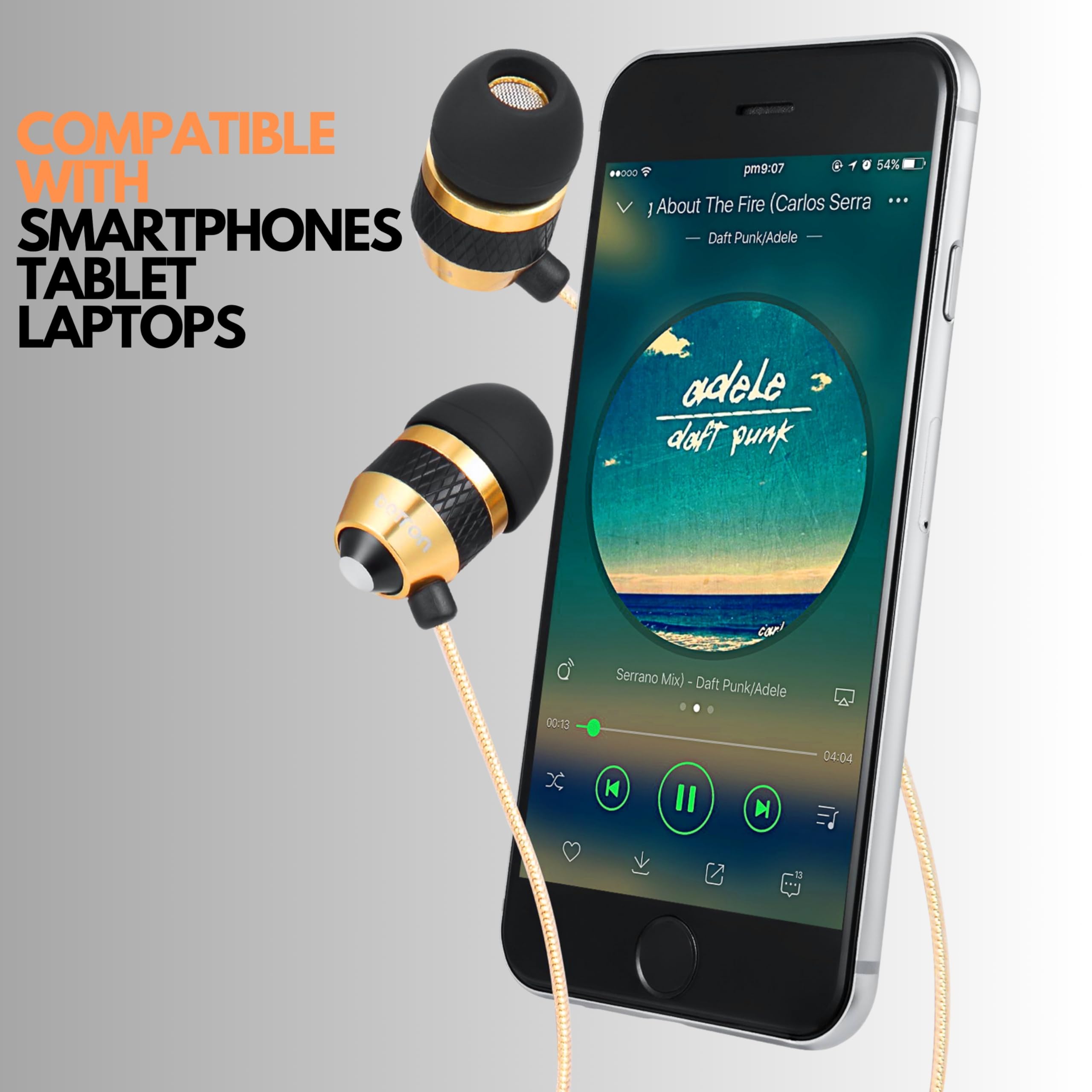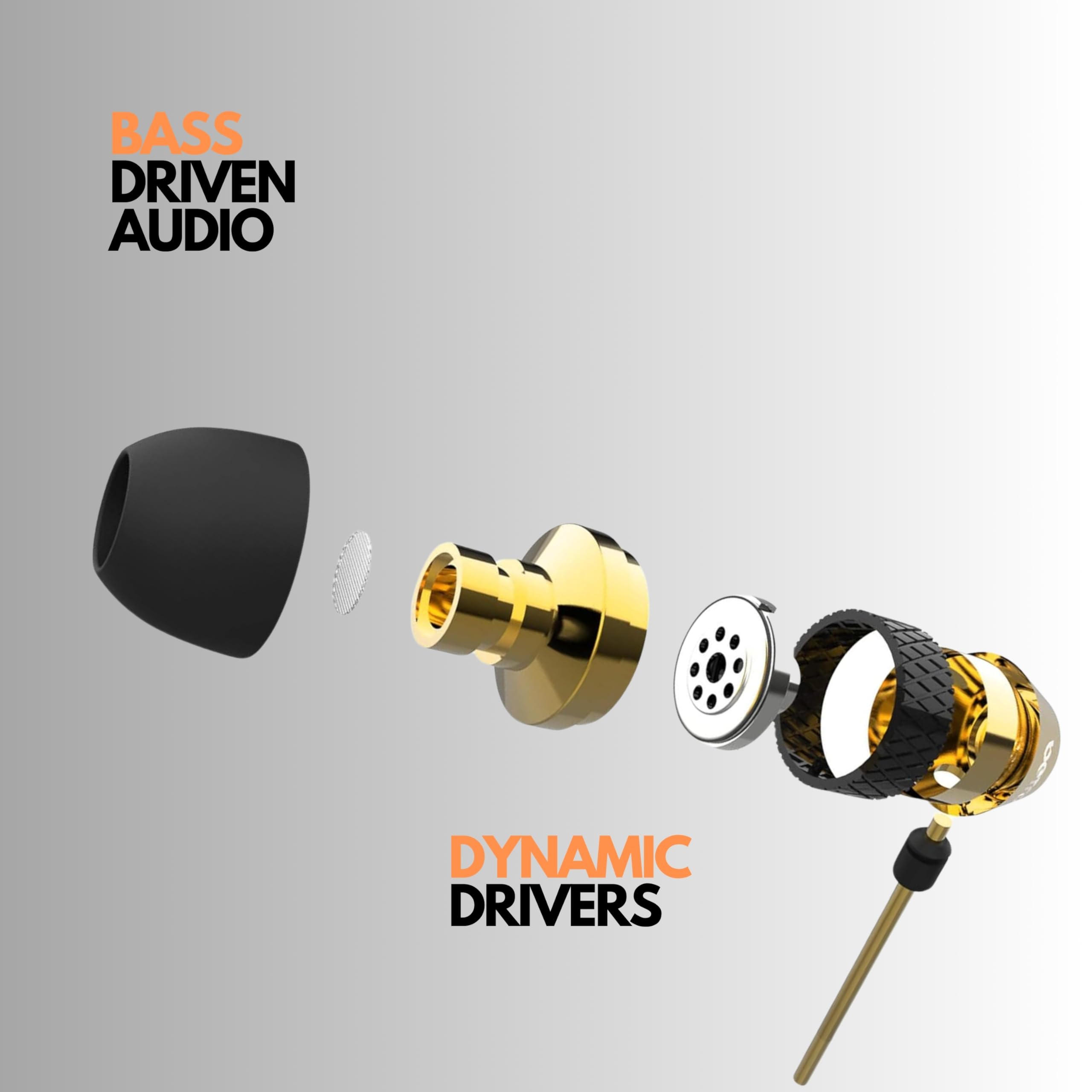 Noise isolating in ear wired headphones with strong bass driven sound. Enjoy high-resolution treble and midrange with powerful bass produced by dynamic earphones