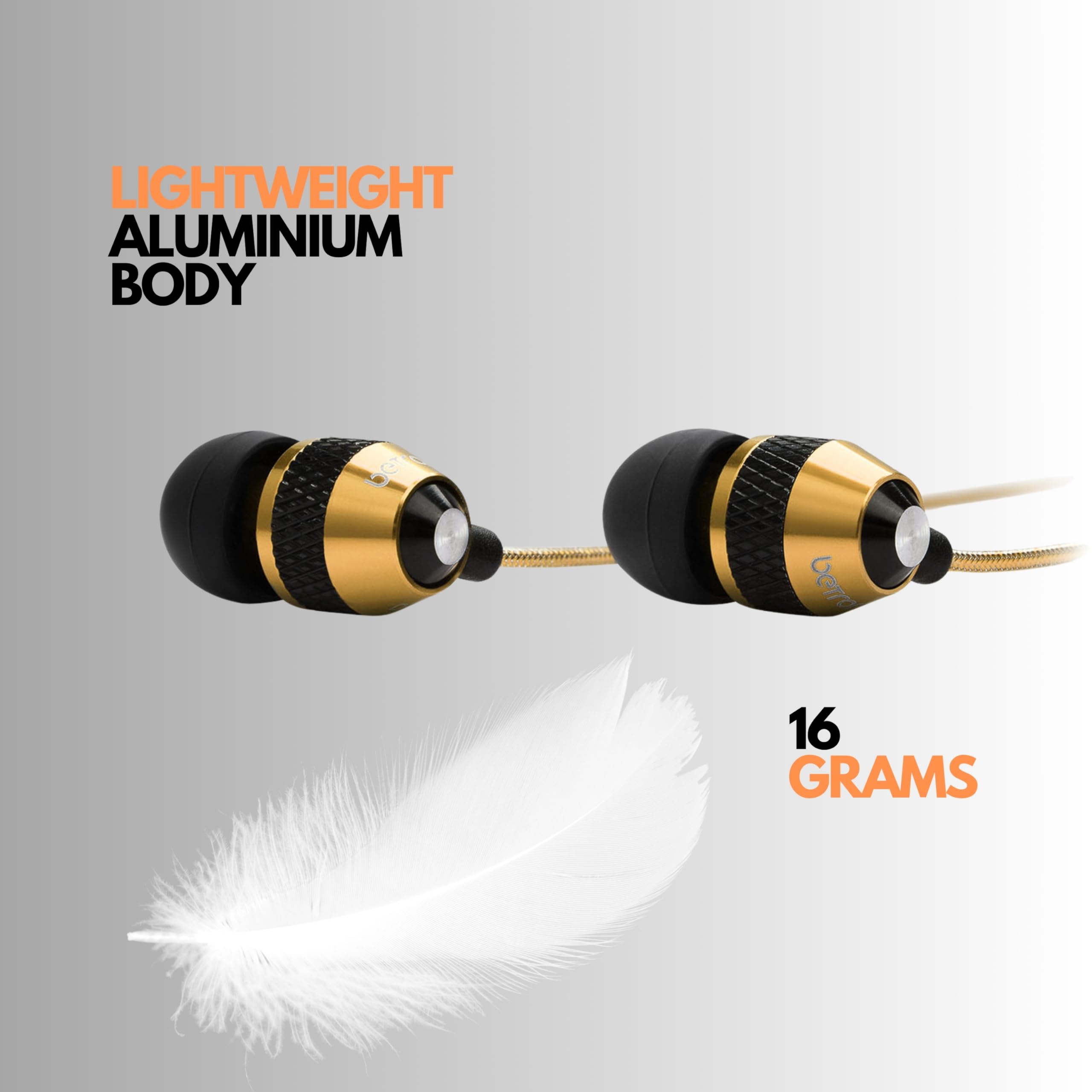 B25 Earphones feature 20hz to 20000 hz frequency response, Y Shape Cord, 3.5 mm gold plated headphone jack, balanced pure sound with strong bass, high trebles and crisper mids