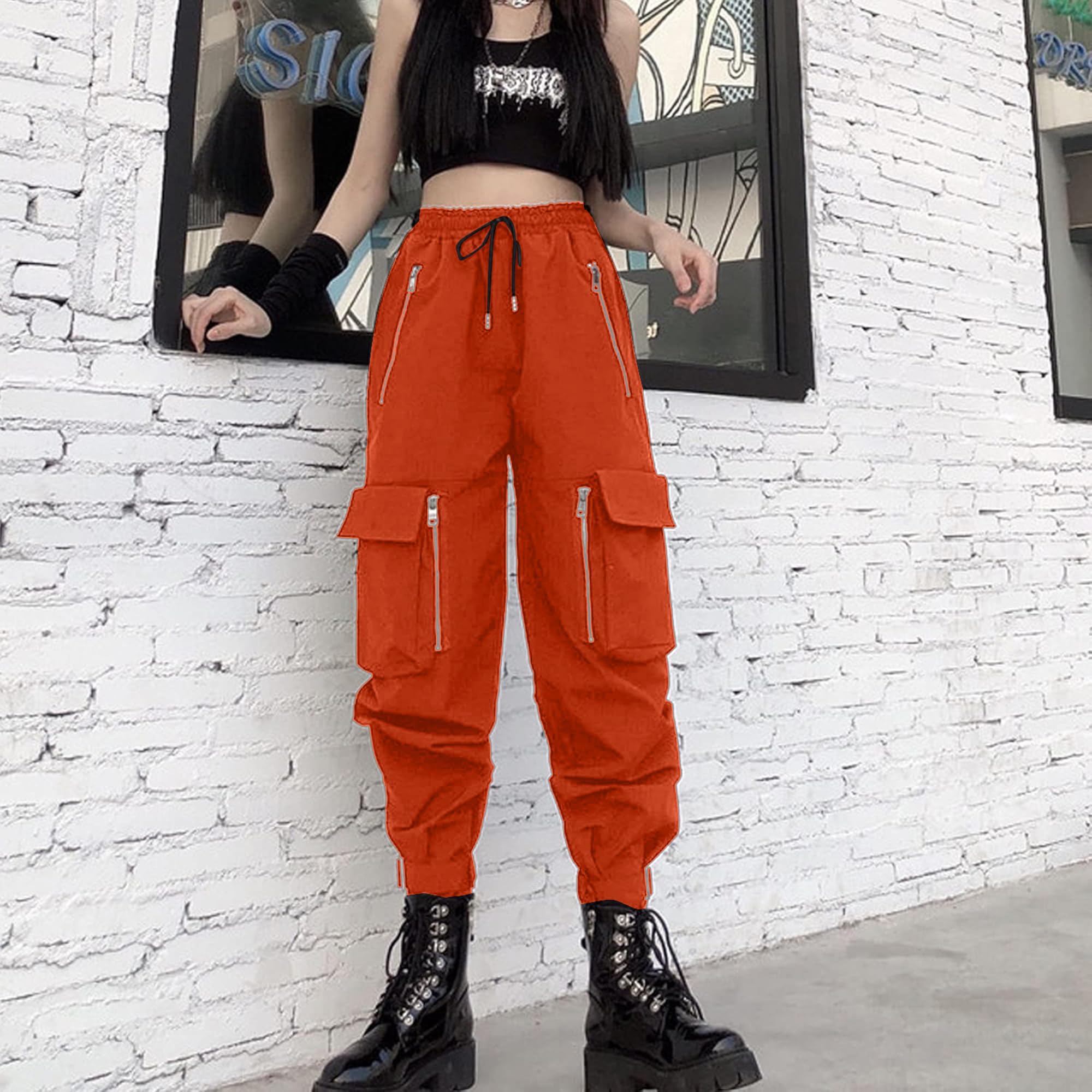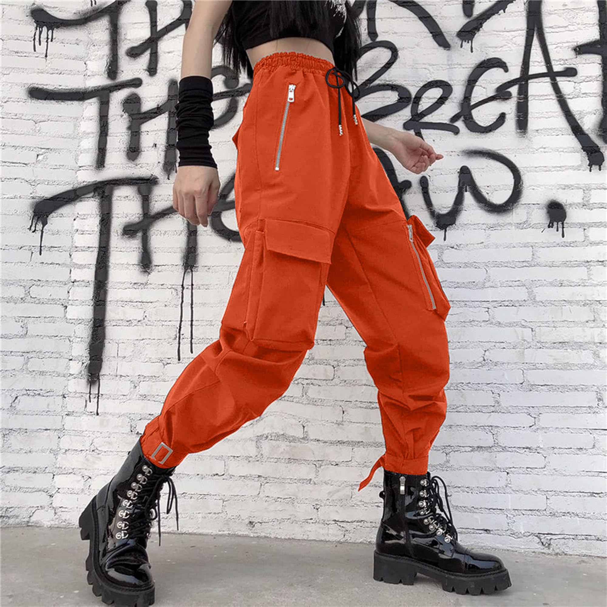 * [Design features of high waisted cargo pants women]: Women's high waisted casual pants, with elastic band on the waist, can adjust the waist according to their body shape. The trouser legs have multiple pockets and zipper designs, and the trouser legs have metal buckles. This hip-hop style makes you stylish and individual. Fashionable retro wide-leg pants show your body curves, sexy and cute.