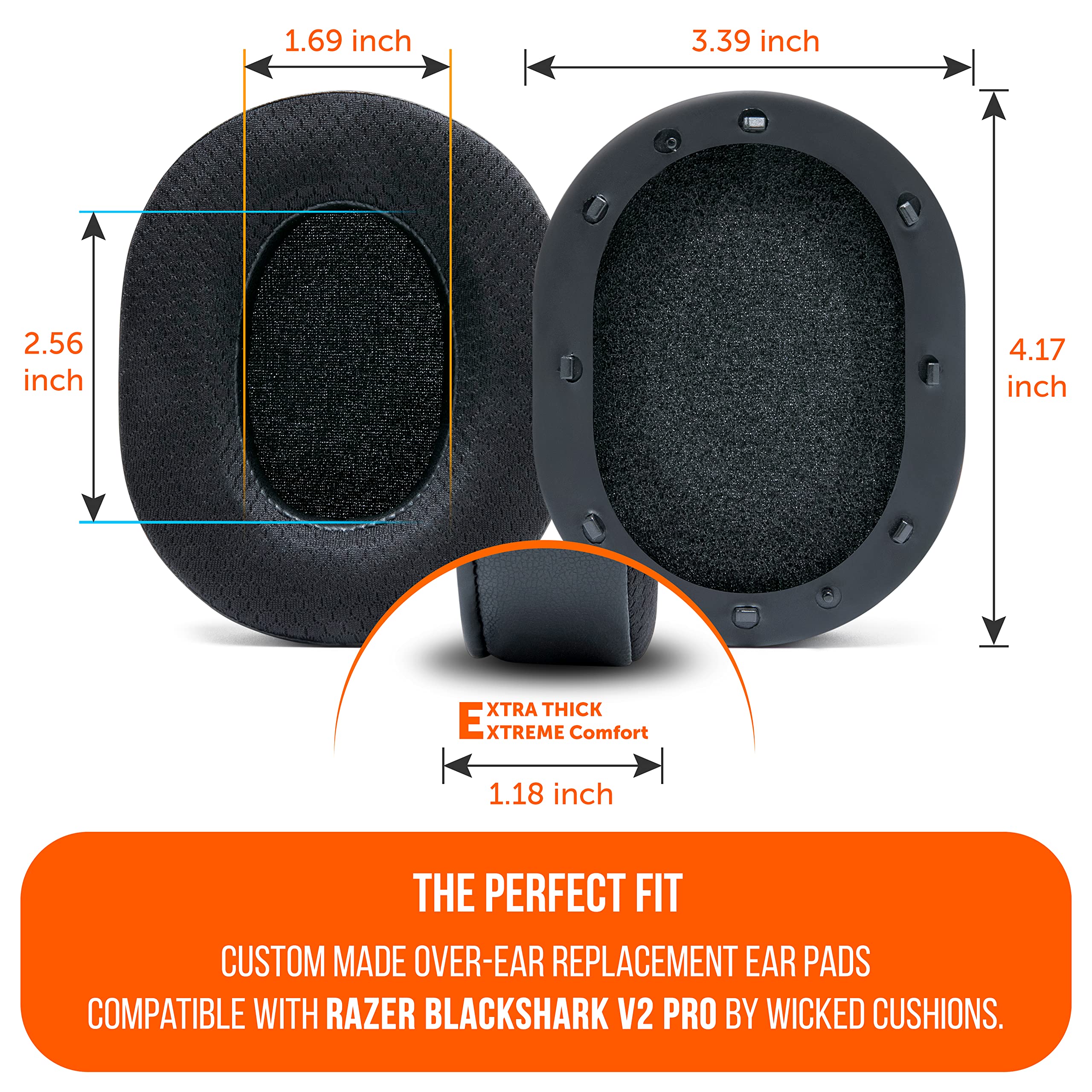 Enhanced Comfort and Thickness: Our earpads compatible with Razer Blackshark v2 & v2 Pro Headsets are thicker than the original earpads, giving your ears more space inside the ear cup to avoid touching internal components. Professional-grade PU leather and highly breathable sports fabric provide long-lasting, crack-free comfort. These extra thick cushions were crafted to improve your gaming experience during extended sessions.