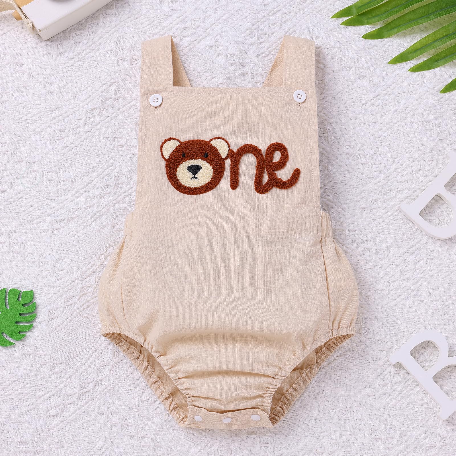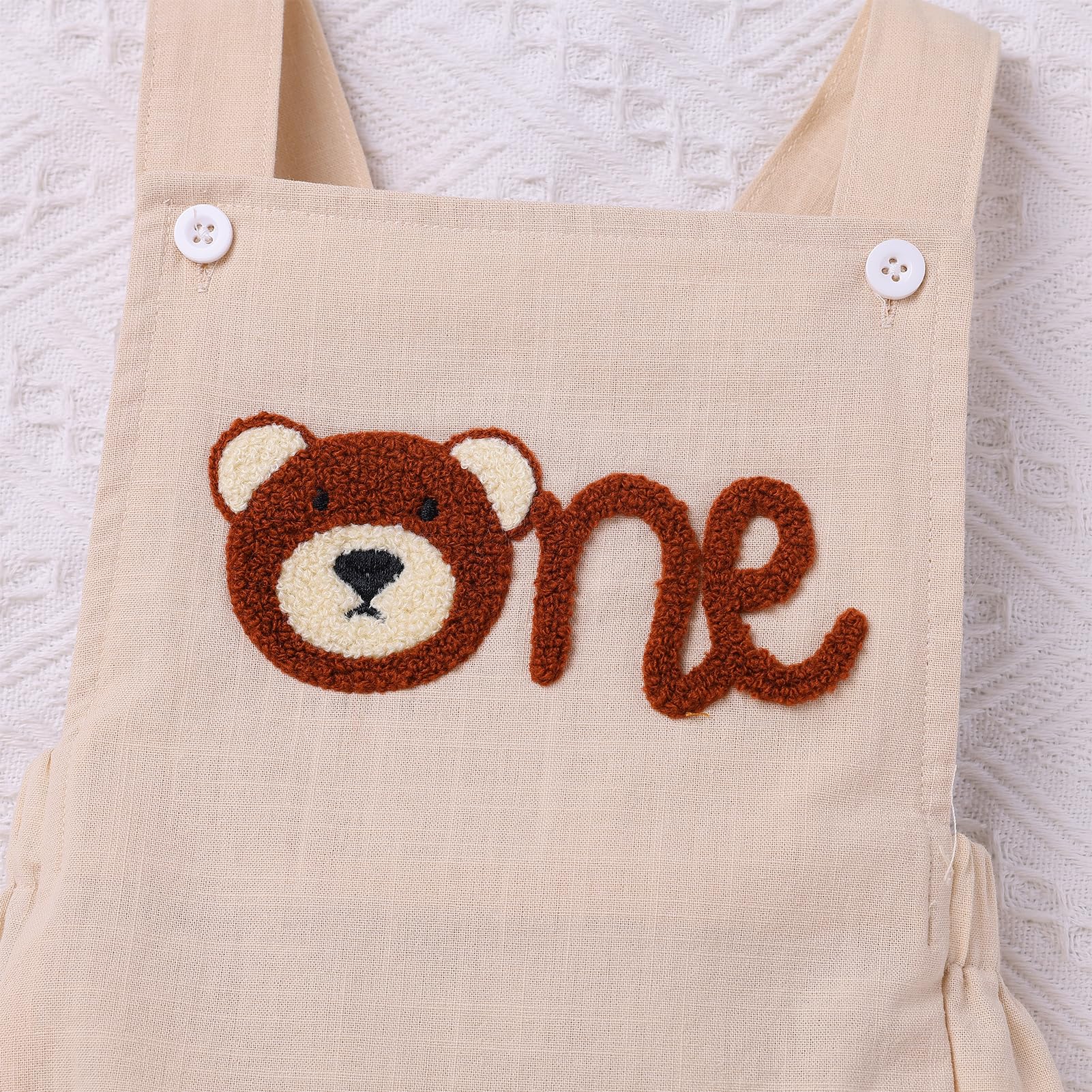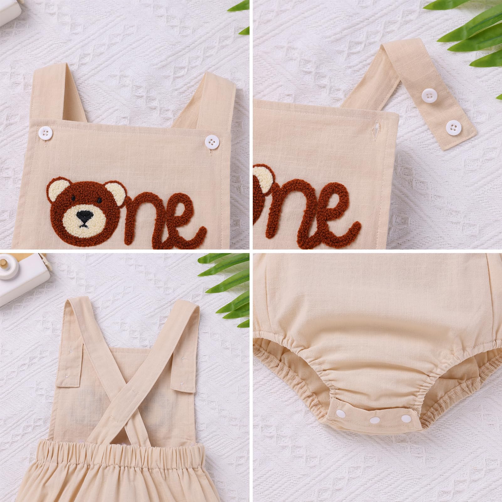 Boho Birthday Outfits for Baby Boy Girl: Adjustable spaghetti straps square neck jumpsuit, each shoulder strap with two buttons, adjust the tightness through the buttonholes. Elastic band at back, adjustable straps that crisscross in back, allows for a customized ease and fit to different body shapes. With 3 snaps at the crotch, easy to change diapers. Embroidered with the letter "One" on the front, adorable as 1st birthday outfit, baby photoshoot outfits boy girl for toddler;