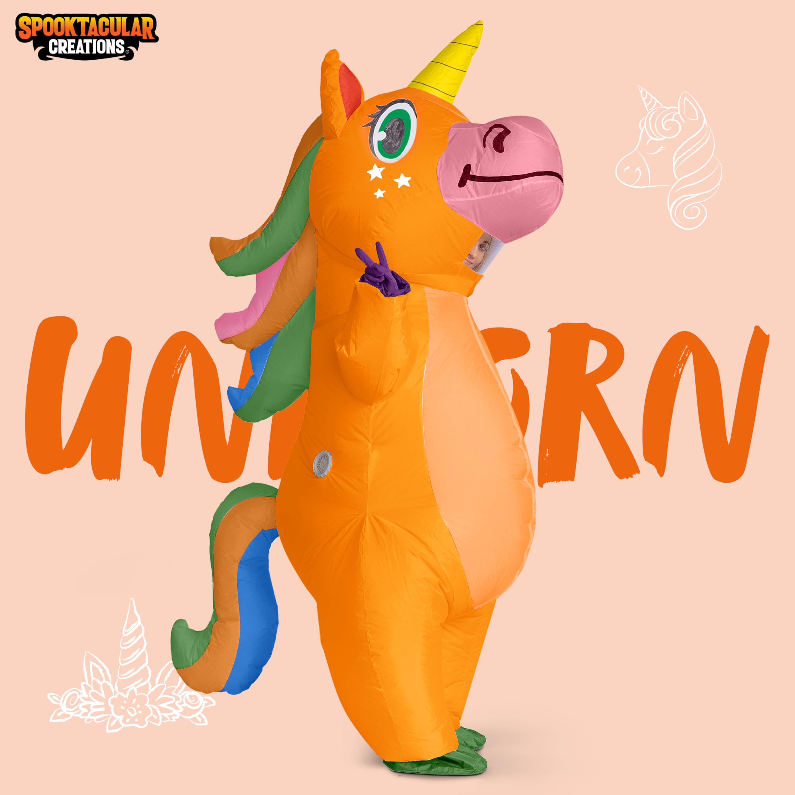 Versatile Occasions: Perfect for Halloween dress-ups, Halloween costume parties, Halloween night events, cosplay parties, theme parties, stage performances, and role-play scenarios. Let your imagination run wild and bring the enchanting world of unicorns to life with this inflatable costume. It's time to embrace magic and captivate everyone around you.