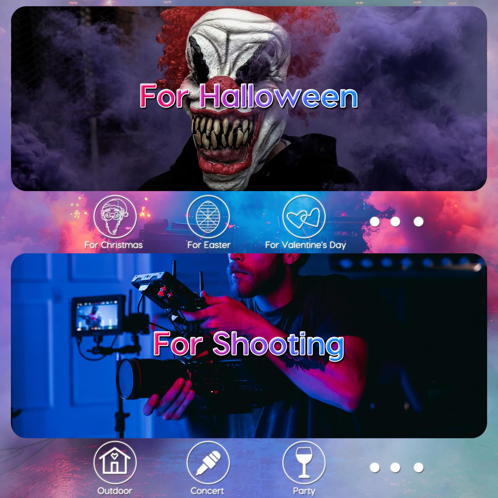 〖Auto Spray〗The LURT newly upgraded 3-light fog machine frees your hands. You only need to press the “AUTO FOG” button on the machine body. After the preheating light turns green, the fog will spray for 15-40 seconds, and your party will be full of atmosphere. Suitable for photography or when you want to create the ideal atmosphere.