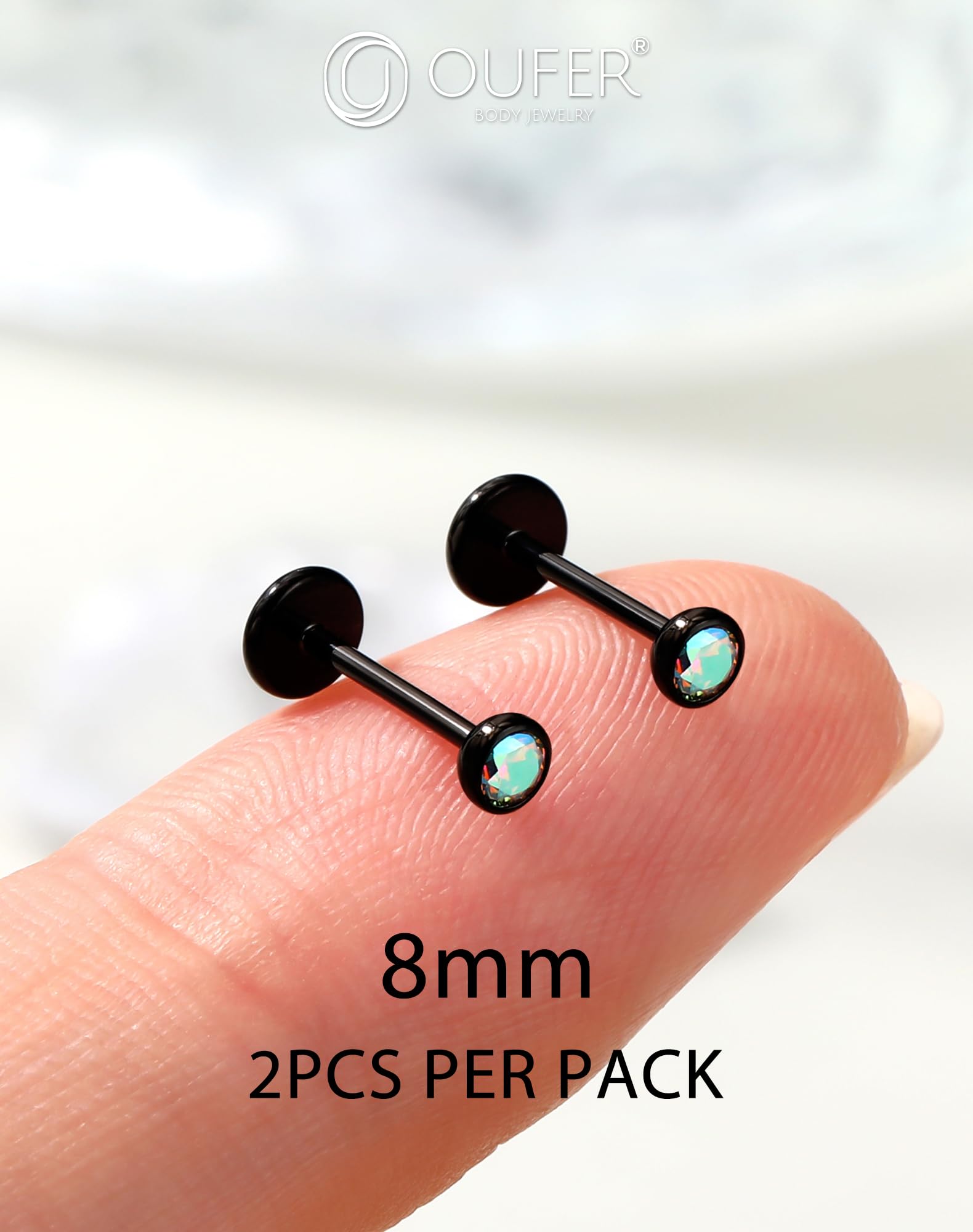 【Standard Flat Back Studs Size】: Gauge = 20g(0.8mm), bar length = 8mm, diameter of CZ = 3mm. The flat back studs are normal and standard size for nose helix tragus labret piercing jewelry.