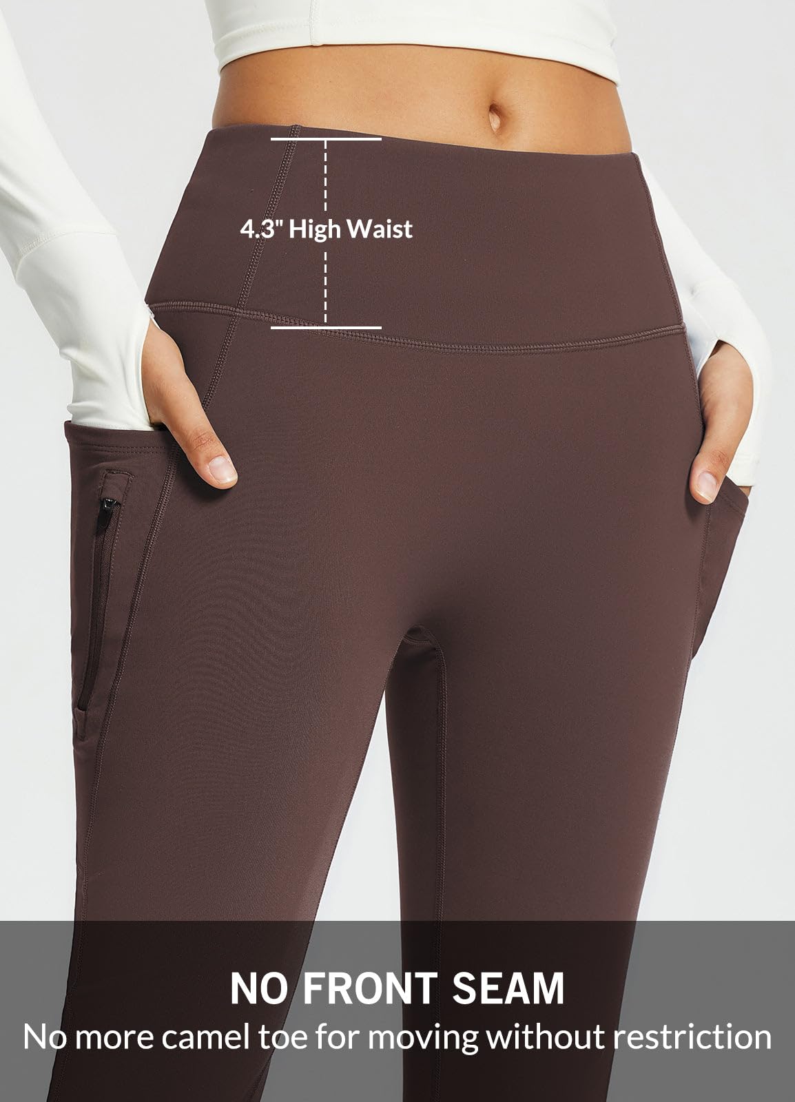 Feel the cold? Put on these fleece lined pants. These high waist yoga pants with pockets with soft fleece lining keep you super comfy and warm under 50°F, the water-resistant fabric is outside to better keep from wind and keep you dry on a snowy day.