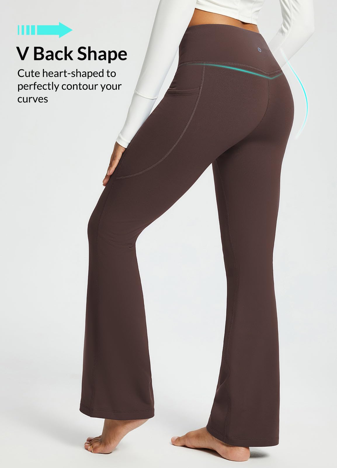 High Waist & Bootcut Design: These yoga pants feature a wide and high-rise waistband, offering gentle compression. Slightly flared pants shape visually slims the silhouette and fits any body type.