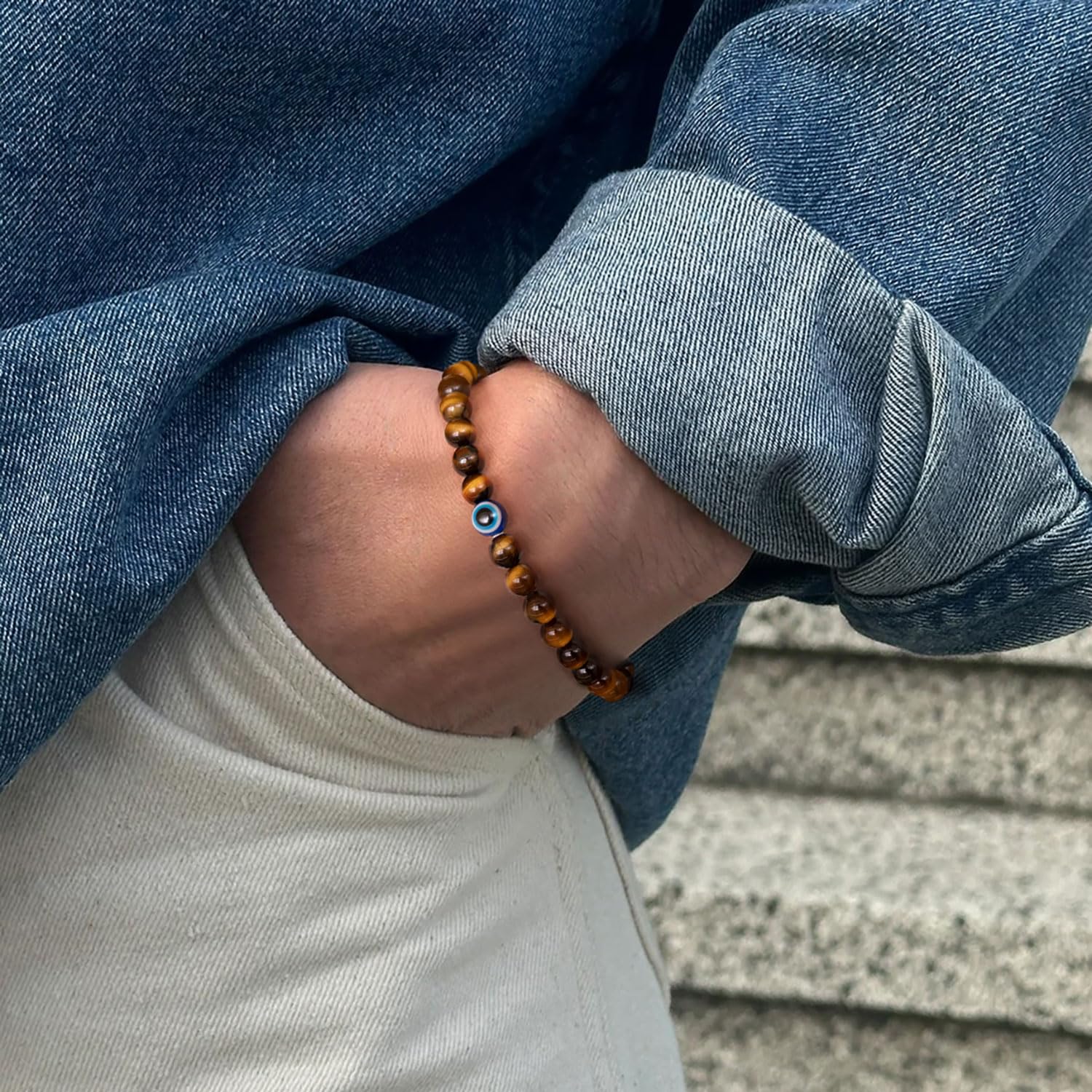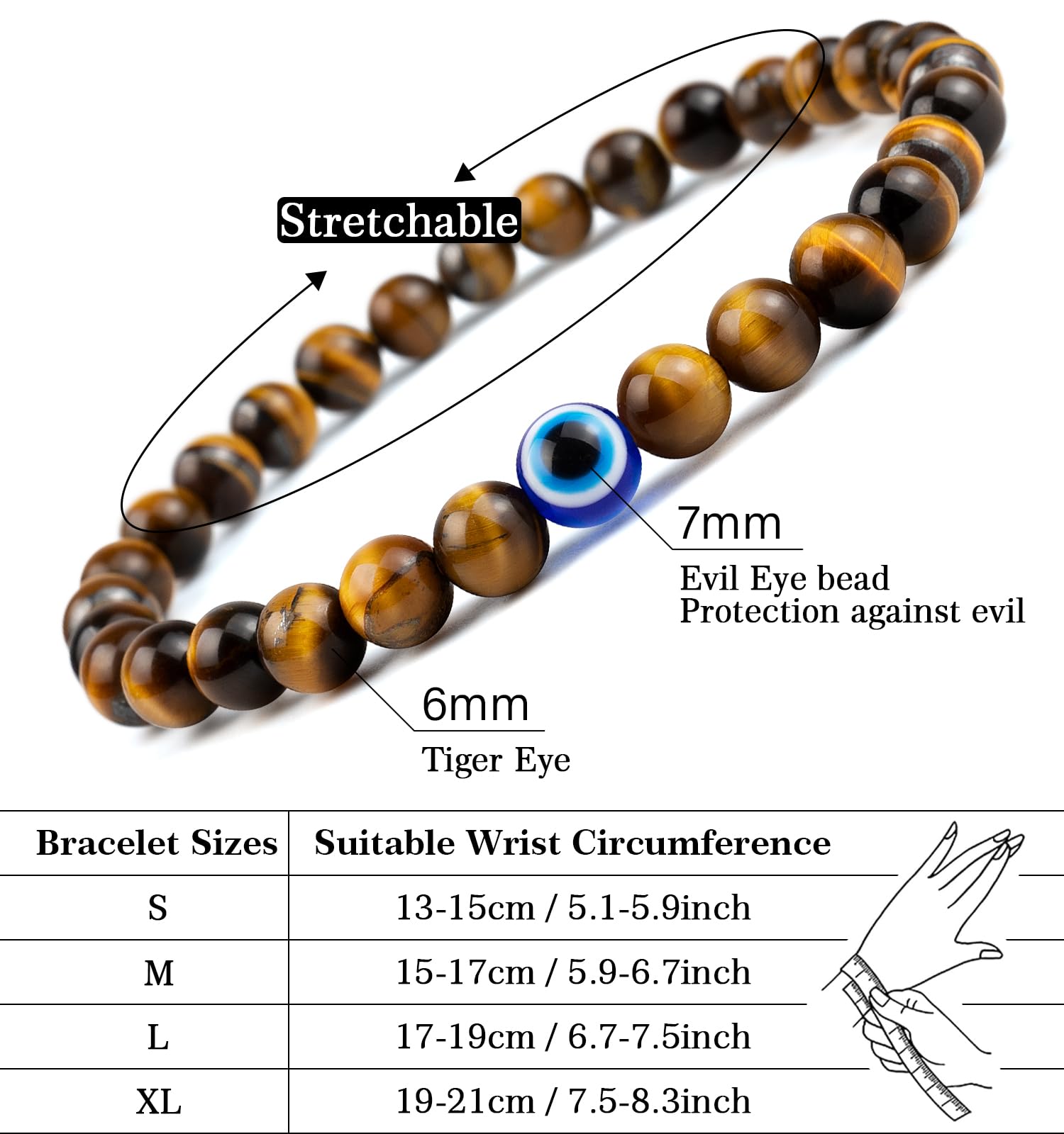 Adjustable Size for Most Wrists - Comfortable & Durable:Crafted with 6mm natural Agate and tiger eye stone beads and sturdy elastic cord, the bracelet stretches freely to fit wrist sizes from S to XL (6.5-8.5 inches). It’s suitable for both men and women, with a smooth hand-polished finish that ensures all-day comfort. Each stone has unique veins—no two bracelets are identical, adding exclusive charm.