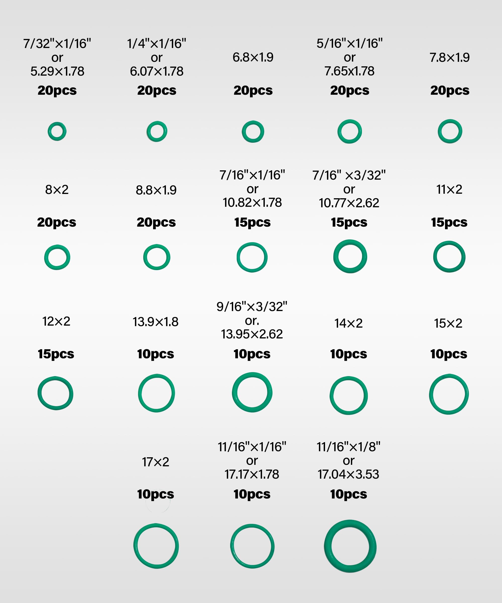 [Widely Used] O ring kits are widely used in cylinders, automotive air conditioning (A/C systems), water pumps, automobiles, drum cars, household appliances, furniture, faucets, electronic appliances, doors and windows, bearings, water pump warehouses, ordinary plumbers, mechanics, workshops, and more.