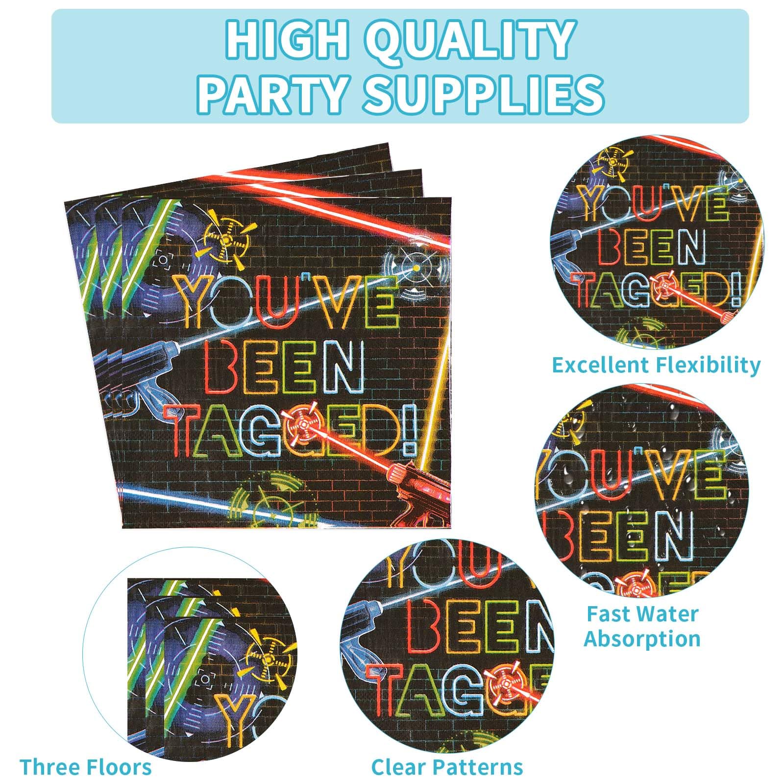 【Multipurpose】Whether you're hosting a kids birthday party, a laser tag fan party, or a fun gathering for adults, our laser tag table decorations tableware can add extra excitement and cohesion to any celebration, captivate laser tag enthusiasts of all ages, elevate your party, and create sparkling memories!