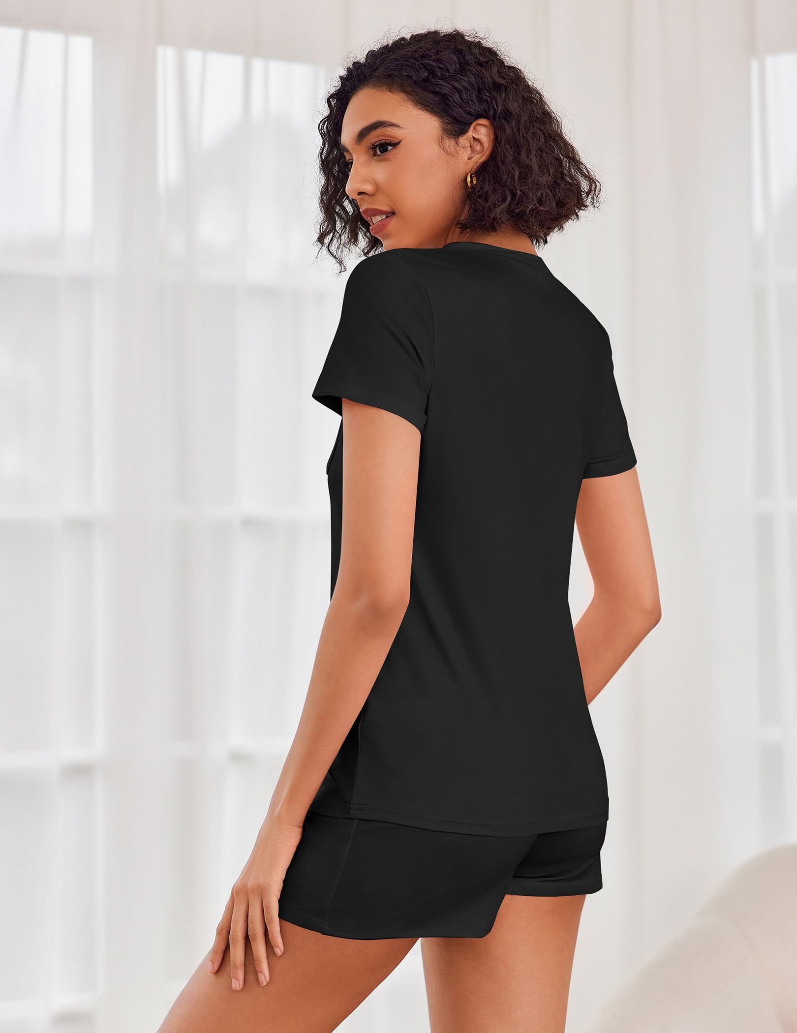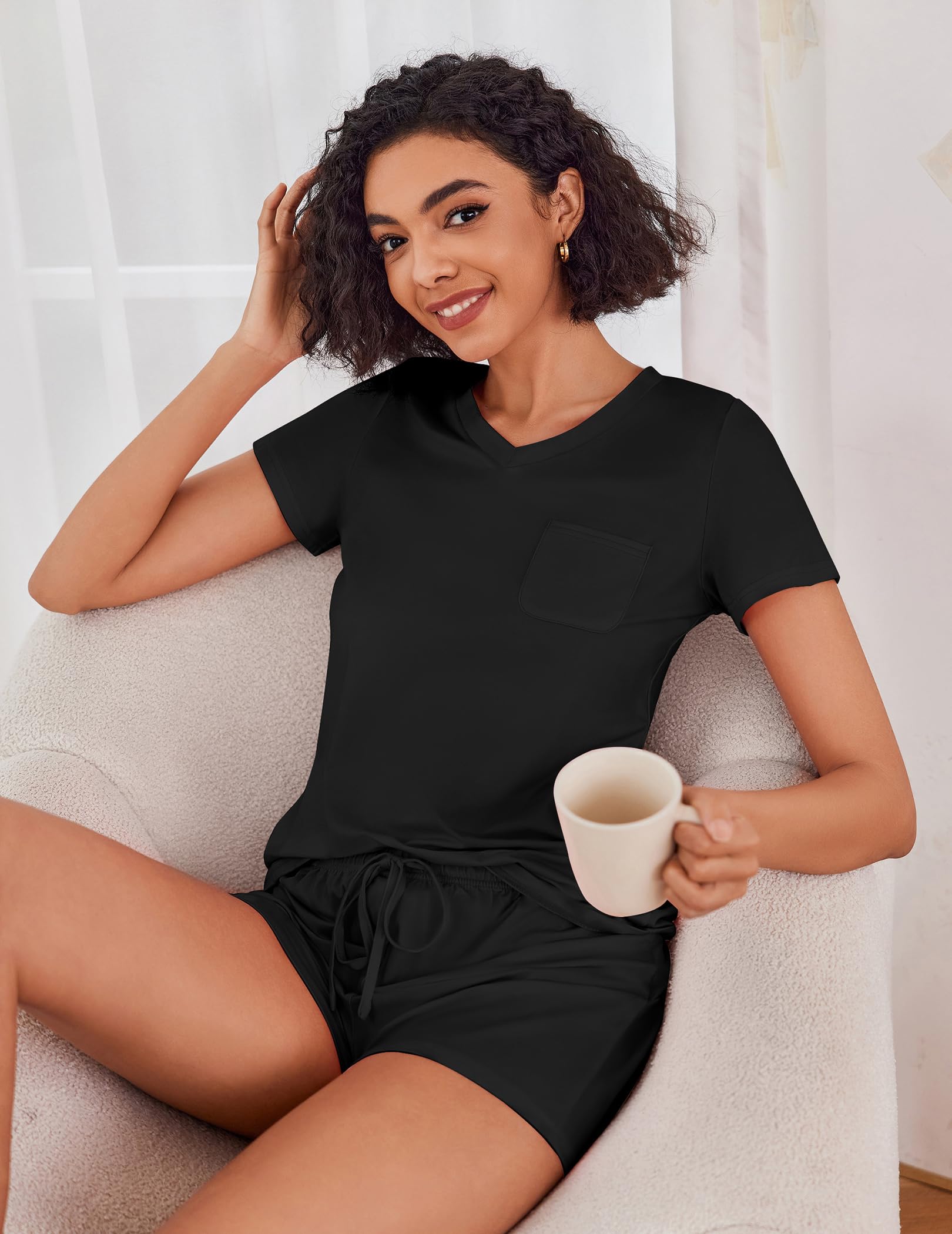 FEATURES: pajama sets for women 2 piece, pj sets for woman, V neck women's pajama sets, short sleeve T-shirt, drawstring elastic waist shorts.
