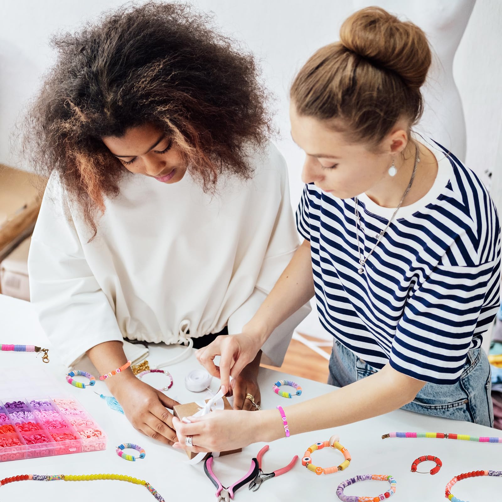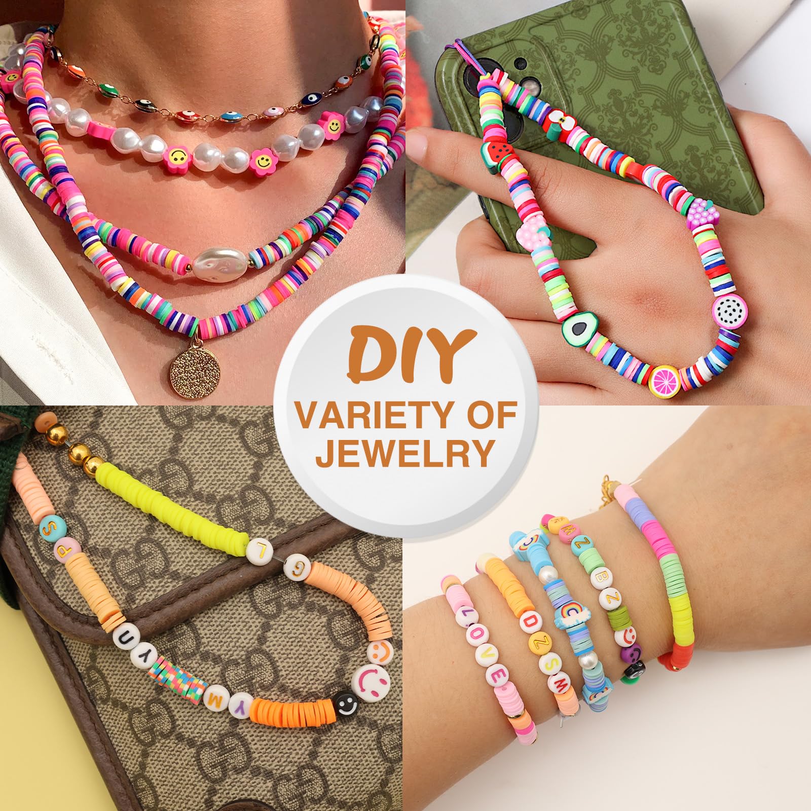 【Wide Applications】:The Sophisticated clay beads for bracelets are very versatile. You can use them to make unique DIY crafts, such as bracelets, necklaces, earrings, cell phone pendants, key chains and more. Whether it is birthday, Christmas, Thanksgiving, or Valentine's Day, Mother's Day, friendship party, you can use them.
