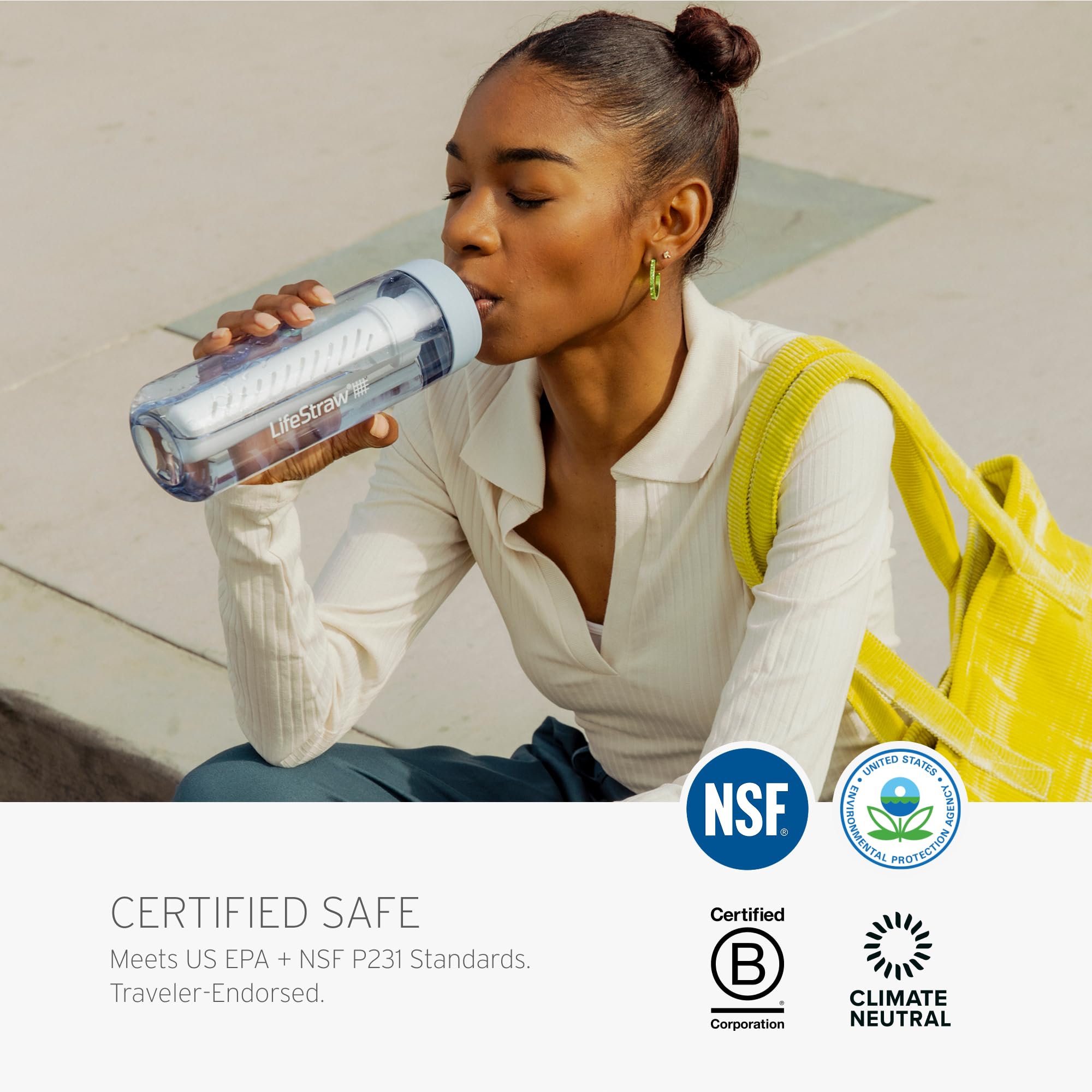 LifeStraw Go Series is the ultimate sidekick for safer, better-tasting water for travel and everyday use. The BPA-free bottle filters out nasties, so you can fill up from airport bathrooms, a tap in Mexico, or a gas station while road-tripping. The advanced 2-stage filter improves taste and protects against bacteria, parasites, microplastics, chlorine, silt, sand, and cloudiness. The BPA-free bottle is made from 50% post -consumer recycled plastic. Do good on the go and avoid single-use plastic bottles. For every purchase, a child in need receives to safe drinking water for a year.