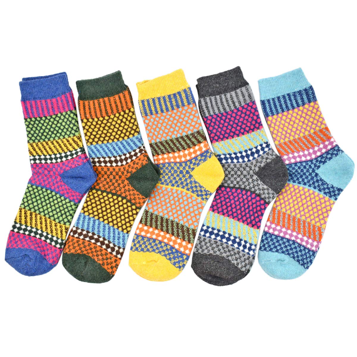 SIZE & CARE : 5 pack Womens wool socks come is a standard US SIZE that fit shoe sizes from US 5 - 9, so everyone can enjoy these colorful socks. Please do not iron them and suggesting wash them by hand, good quality socks require the proper care! advice wash before wear!