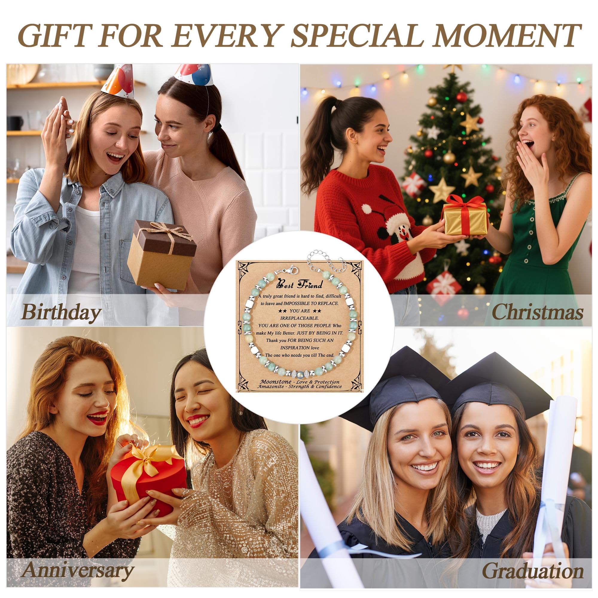 💖Friendship Gifts for Women: Amazonite can not only bring peace, calm, balance, but also symbolize Strength and Confidence. The moonstone represents Love and Protection. It is hard to imagine how touched she was when she received such a meaningful gift.