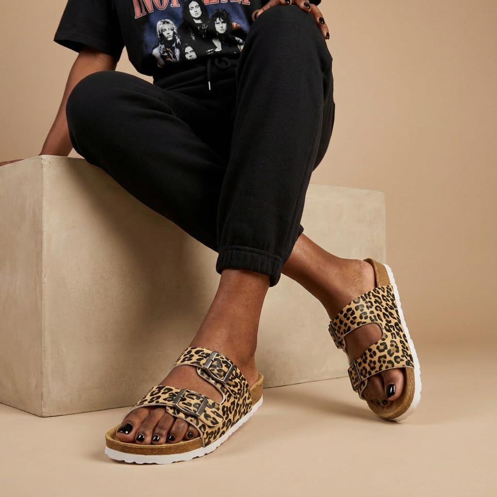 𝗙𝗹𝗲𝘅𝗶𝗯𝗹𝗲 𝗖𝗼𝗿𝗸 𝗙𝗼𝗼𝘁𝗯𝗲𝗱 – Experience superior flexibility with the lightweight cork footbed, allowing for natural movement in these womens sandals. Perfect for those who love flat sandals and need a comfortable option for everyday wear.
