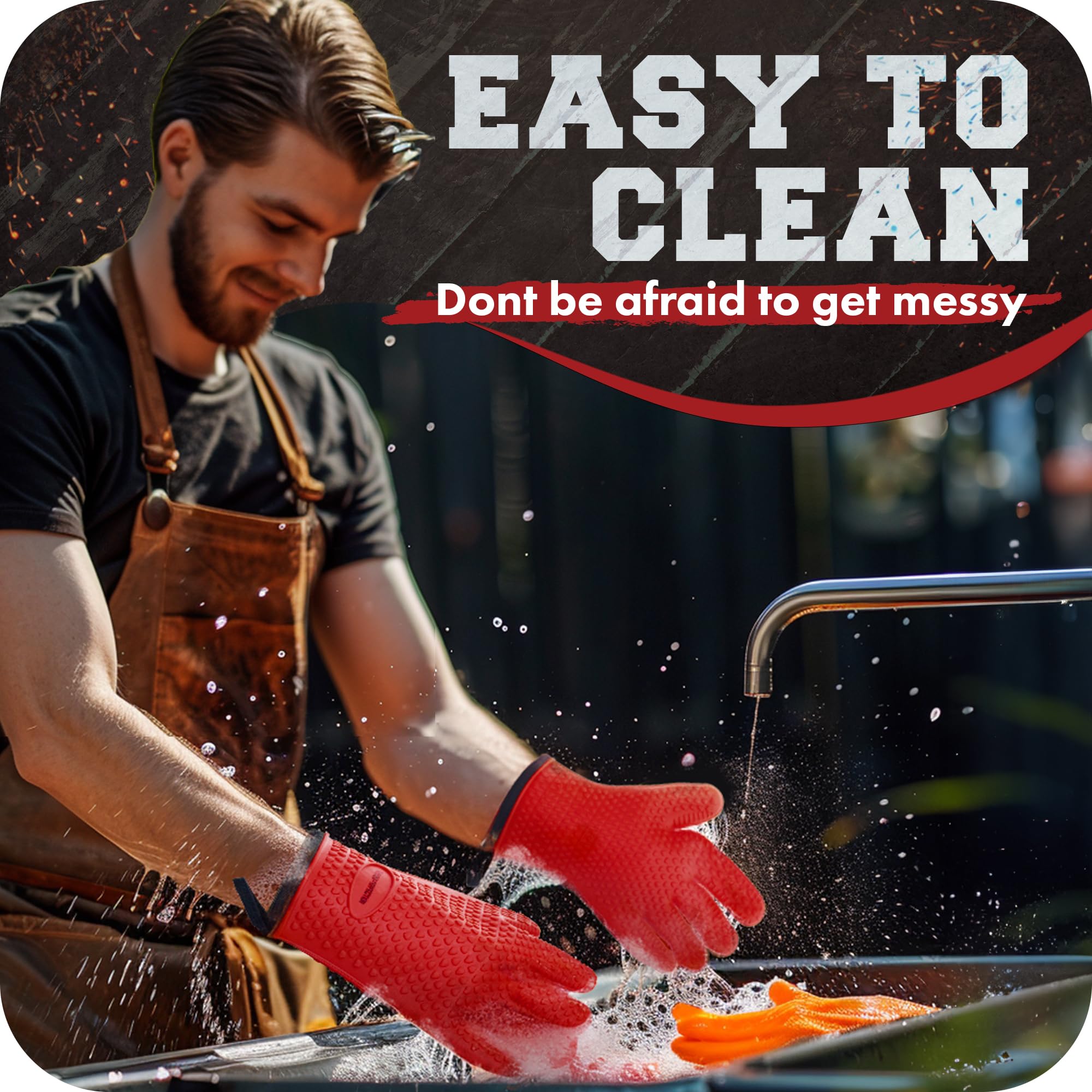Don't Sweat After A Short Use - We've added a cotton layer inside our heat gloves for cooking that increases the comfort and durability of the gloves. and despite all of that, the flexibility of our grilling gloves is amazing! You got to try it! This is how to bbq right , a must-have grill accessories set/ traeger grill accessories / smoker accessories heat proof gloves for cooking.