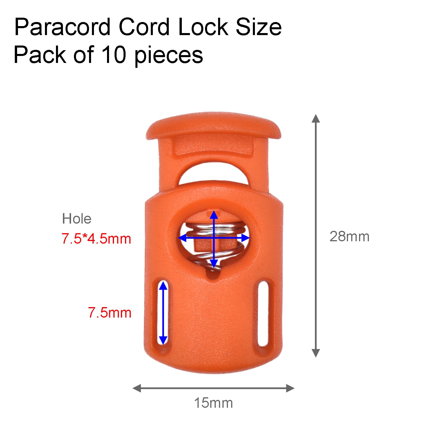 Perfect Size: This pack includes 10 single hole cord lock stoppers for drawstring, outter in the dimensions of 28 x 15 mm and the drawstirng hole diameter of 7.5 x 4.5 mm in the color Orange. Please refer to our product images for accurate sizing and ensure the perfect fit. Note: Ropes are not included