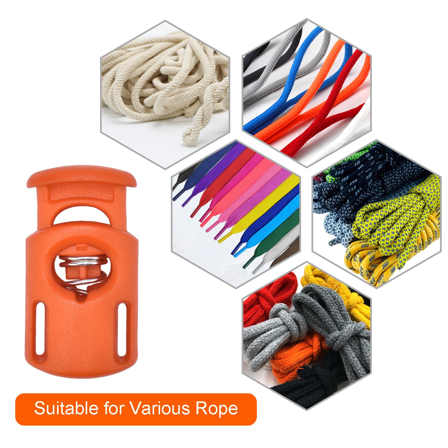 User Friendly: Our flat cord locks are designed to ensure a firm grip and easy finger presses. Simply press the cord lock top to thread the rope through the hole and adjust to your required length