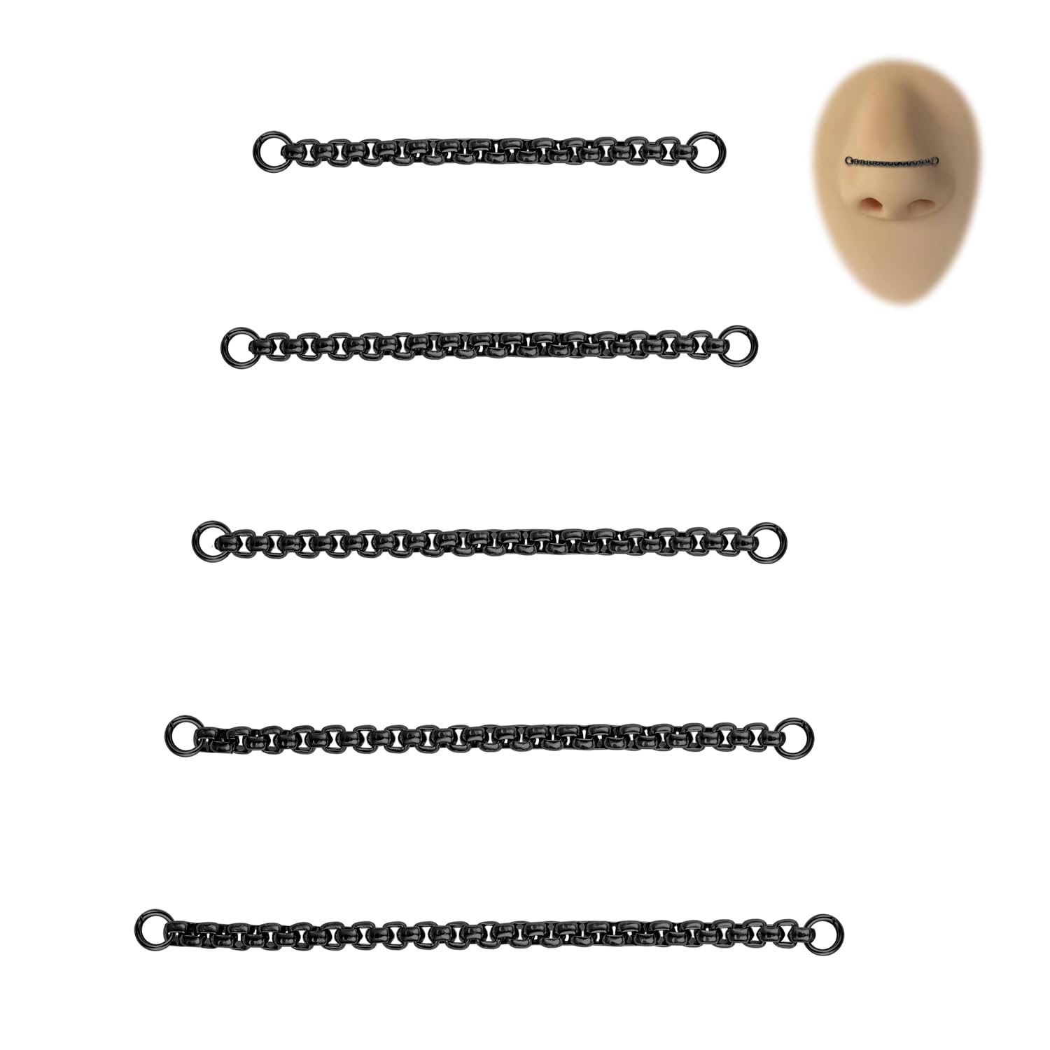 ★Packaging & Size: Five different sizes of nose ring chains, 32mm, 35mm, 40mm, 45mm, 50mm, meet your wearing needs for different parts. (This set does not include nose studs, nose rings, or earrings)