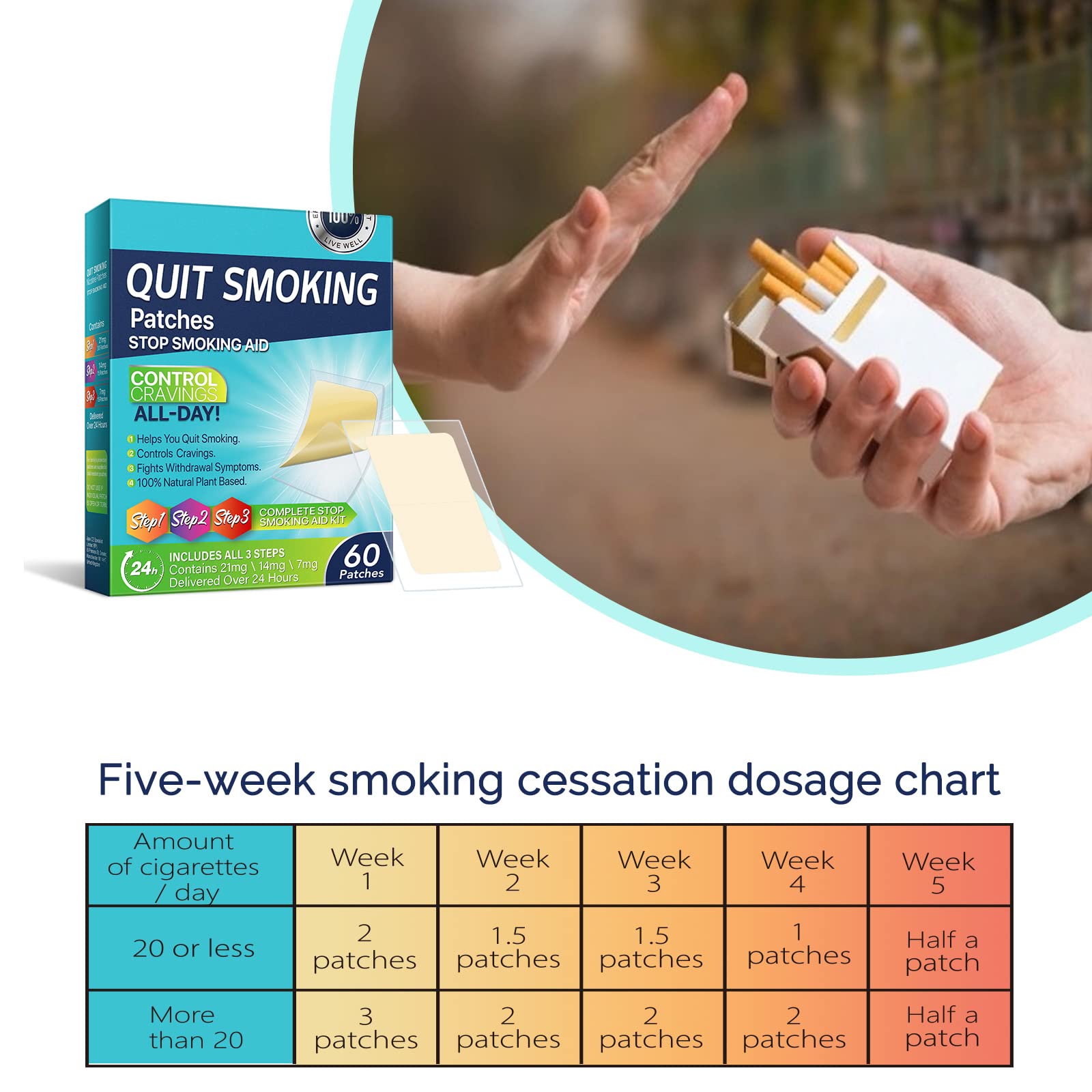 THE FIRST STEP TO A HEALTHY LIFE: The quit smoking patches are a gentle way to quit smoking, helping you to gradually reduce your desire to smoke. Quitting smoking is a challenge that many people have experienced, and to be successful you must have the motivation, patience and time to quit!