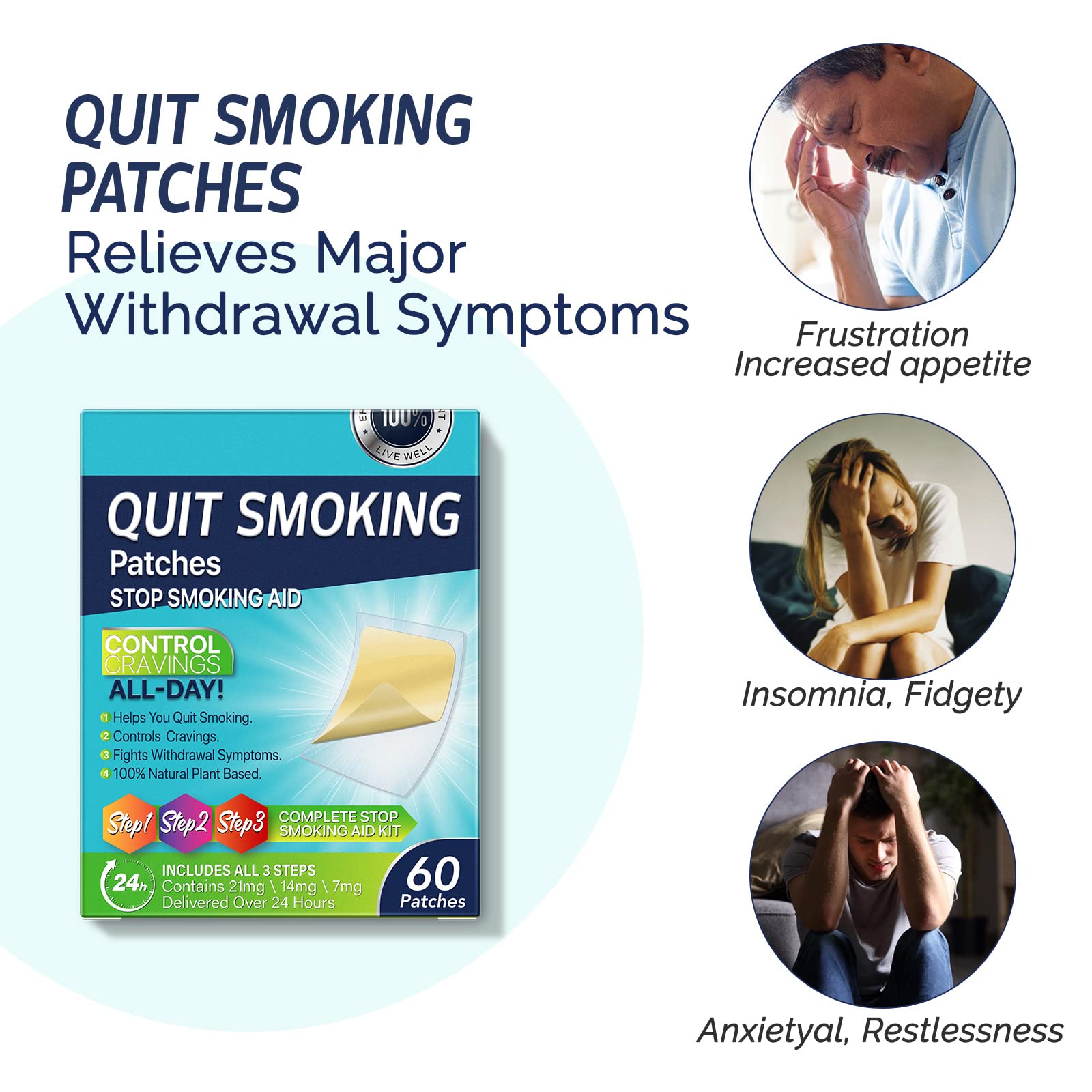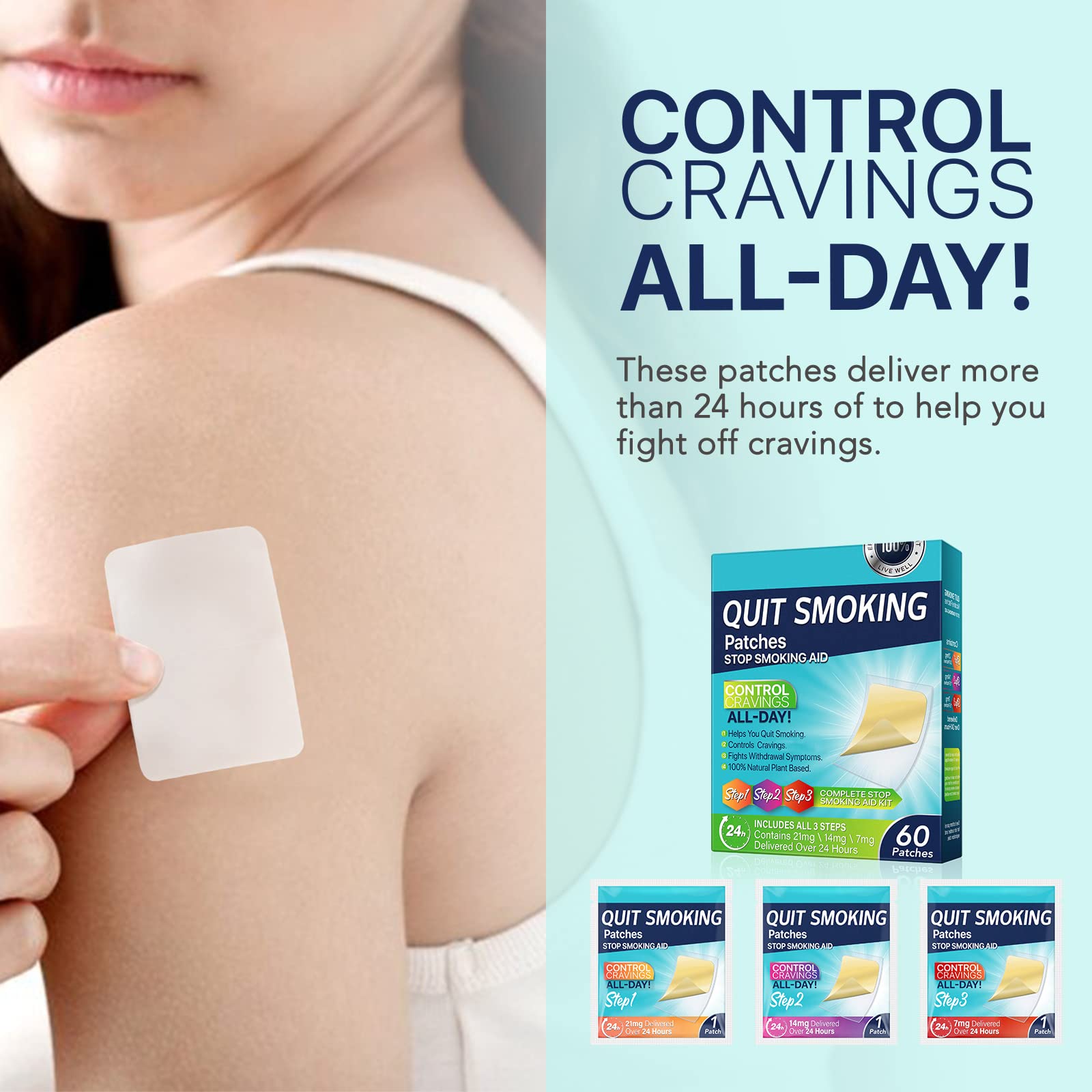 ALL DAY SAFE TO USE: The Patches are made from 100% plant-based and are designed for quit smoking people. Simply apply the patch anywhere on your body to get support within 24 hours, safely and effectively helping you kick the habit.