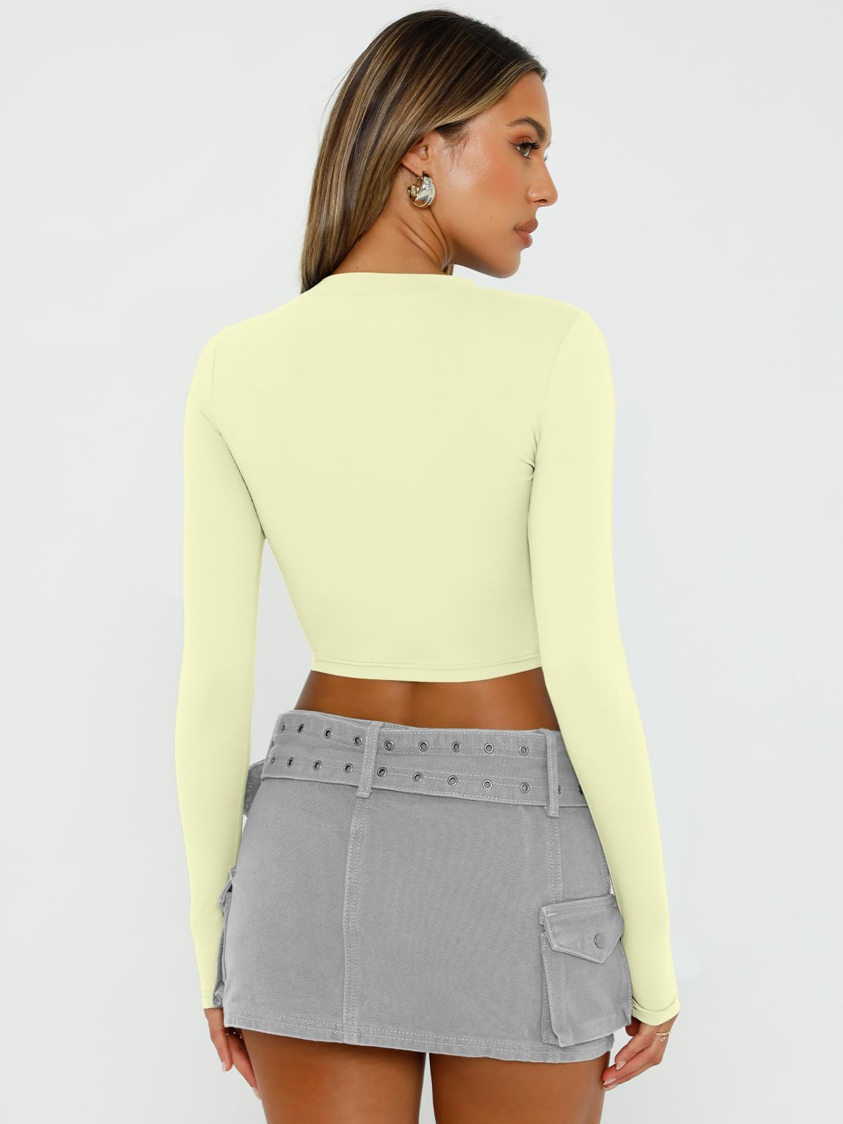Y2k Design: Cropped and regular style,you can wear it regularly or fold it up like a crop top.cute,slim fitted,casual style,scoop neck,long sleeve shirts.