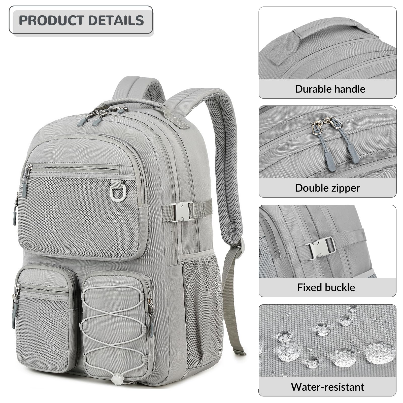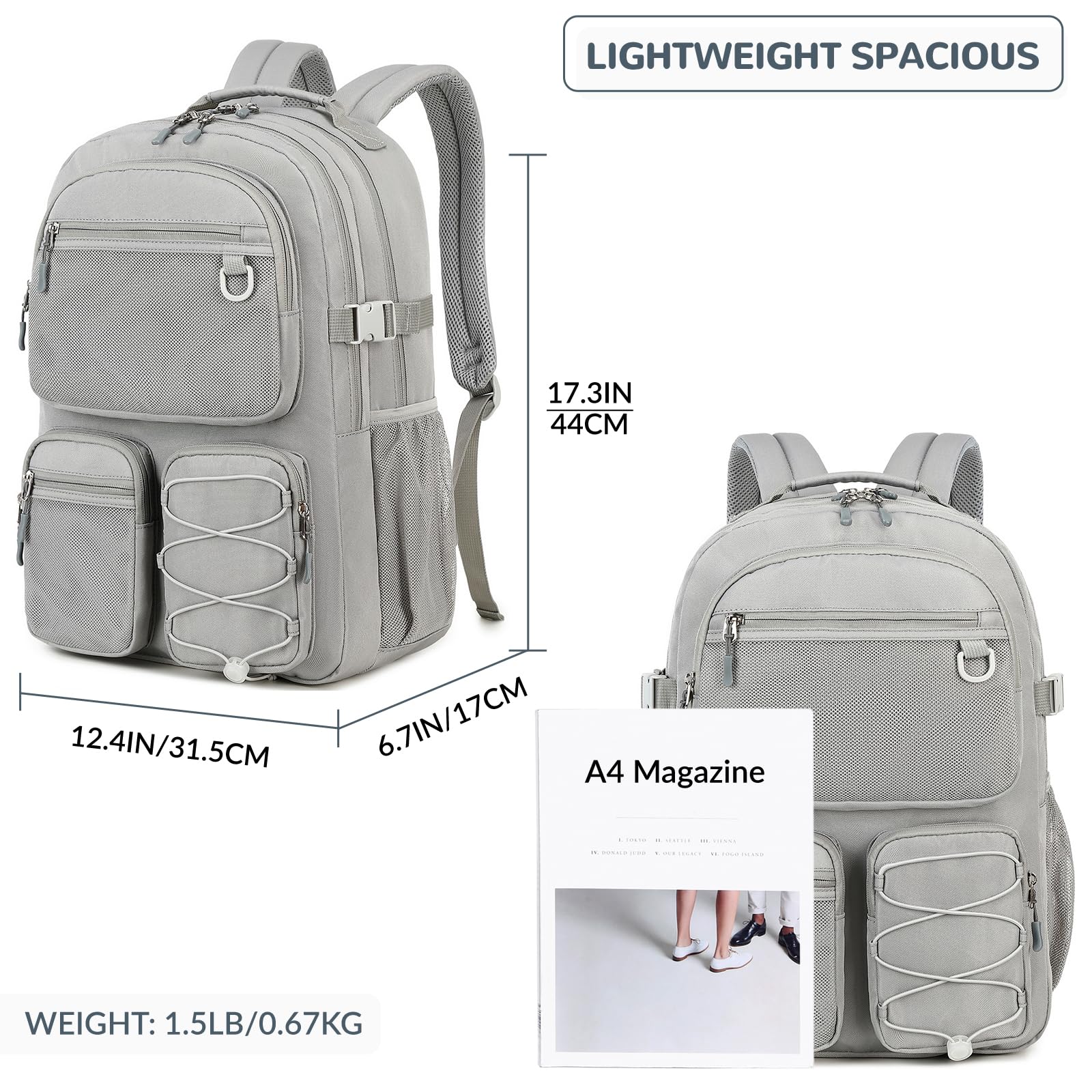 [Durable & Lightweight] - The big backpack is made of water resistant polyester fabric with metal zippers. It is lightweight only 1.56lb, Great for casual daily use, school and travel.