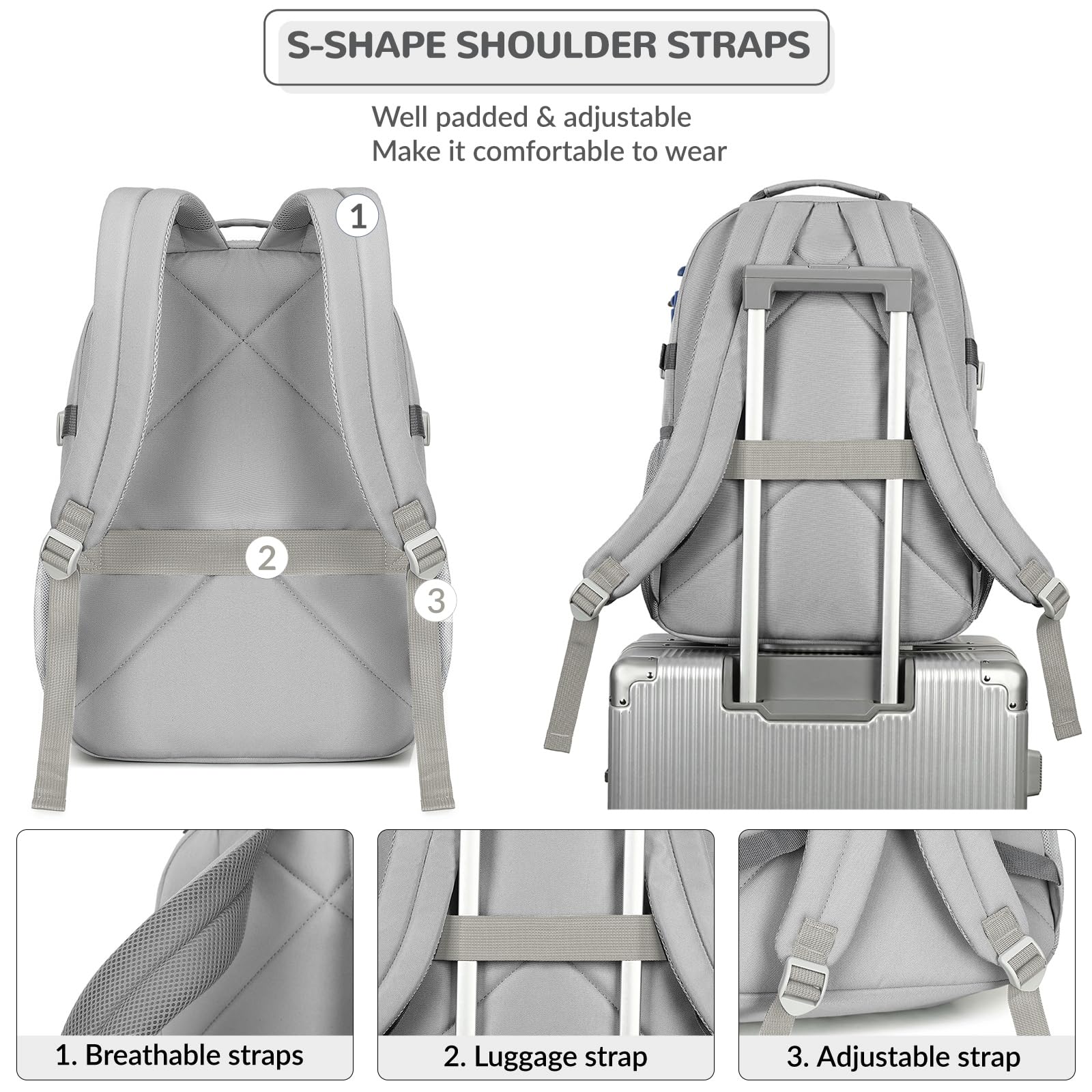 [Comfortable] - The shoulder starp is adjustable, you can adjust the lenth that suits yourselves, and luggage strap allows backpack fit on luggage/suitcase, slide over the luggage upright handle tube for easier carrying.