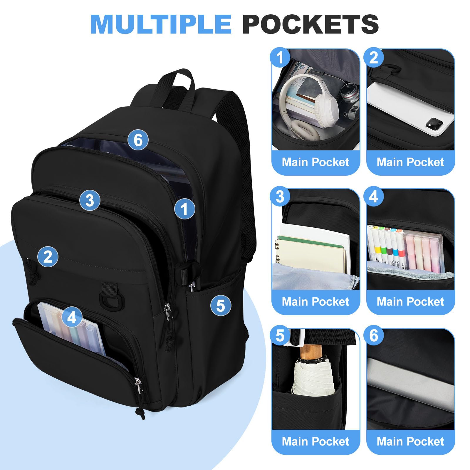 EXTRA LARGE CAPACITY】 This backpack offers plenty of storage space, perfect for everyday use. The backpack has four pockets of varying sizes to keep your laptop, iPad, mobile power, camera, books, and anything else you need to keep your belongings organized. In addition, there is a separate computer compartment in the main pocket that can hold up to a 15.6-inch laptop.