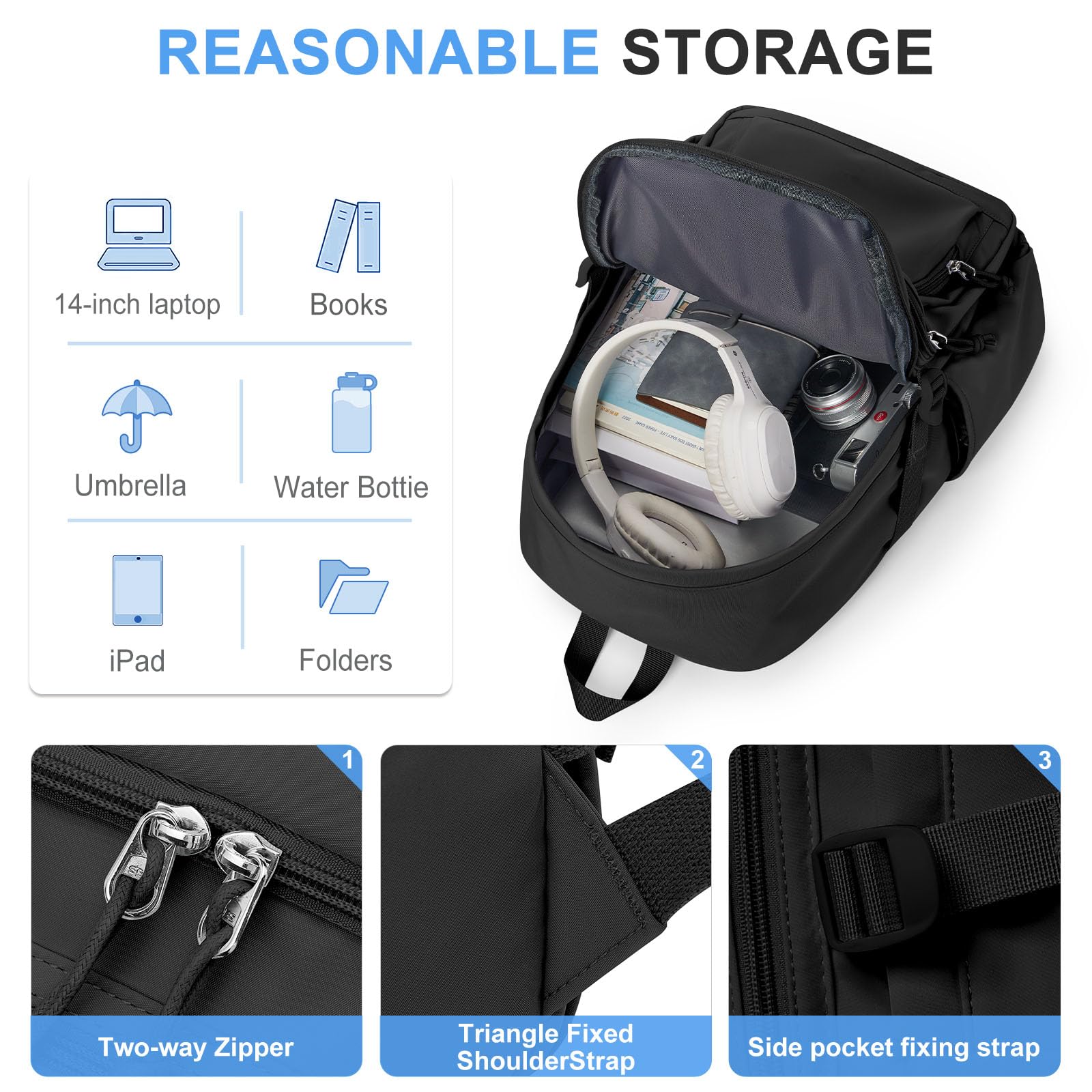 QUALITY FABRIC】Made of high quality waterproof nylon fabric, durable and easy to clean. Casual backpack with high quality SBS zippers, the two-way zipper is made of high quality metal, smooth to use and ensure long-lasting use.