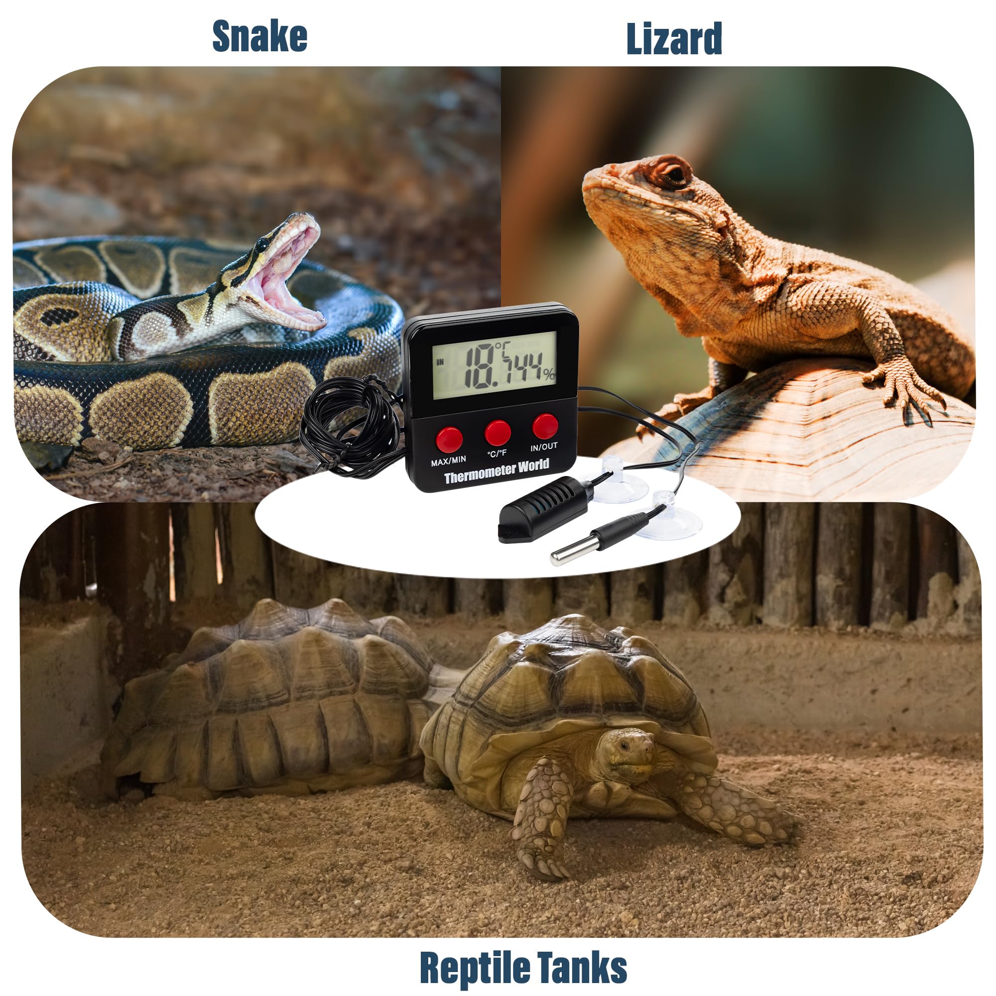 COMPLETE WITH TWO PROBES – Easy to use digital reptile thermometer hygrometer with two external probes, one for temperature and one for humidity monitoring.