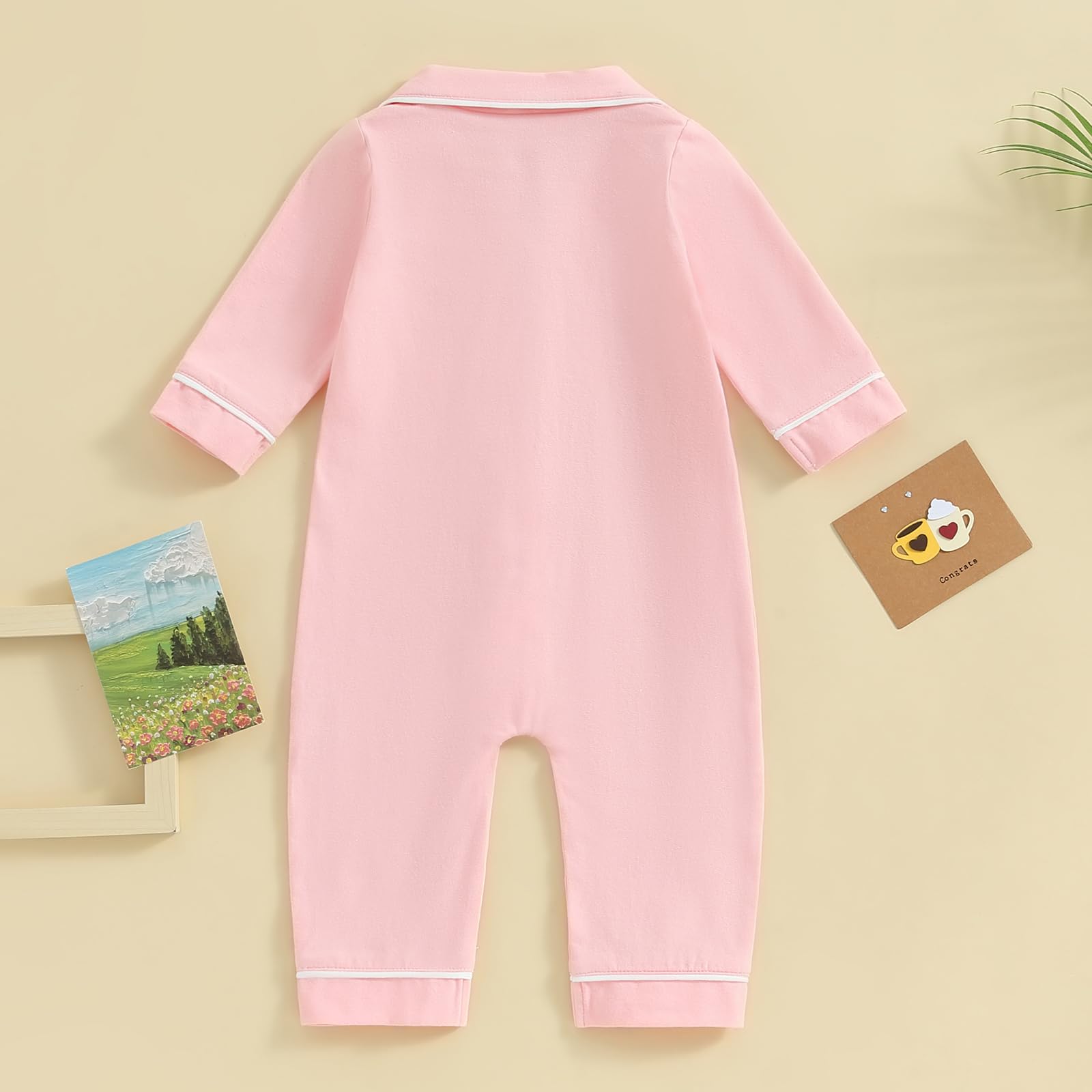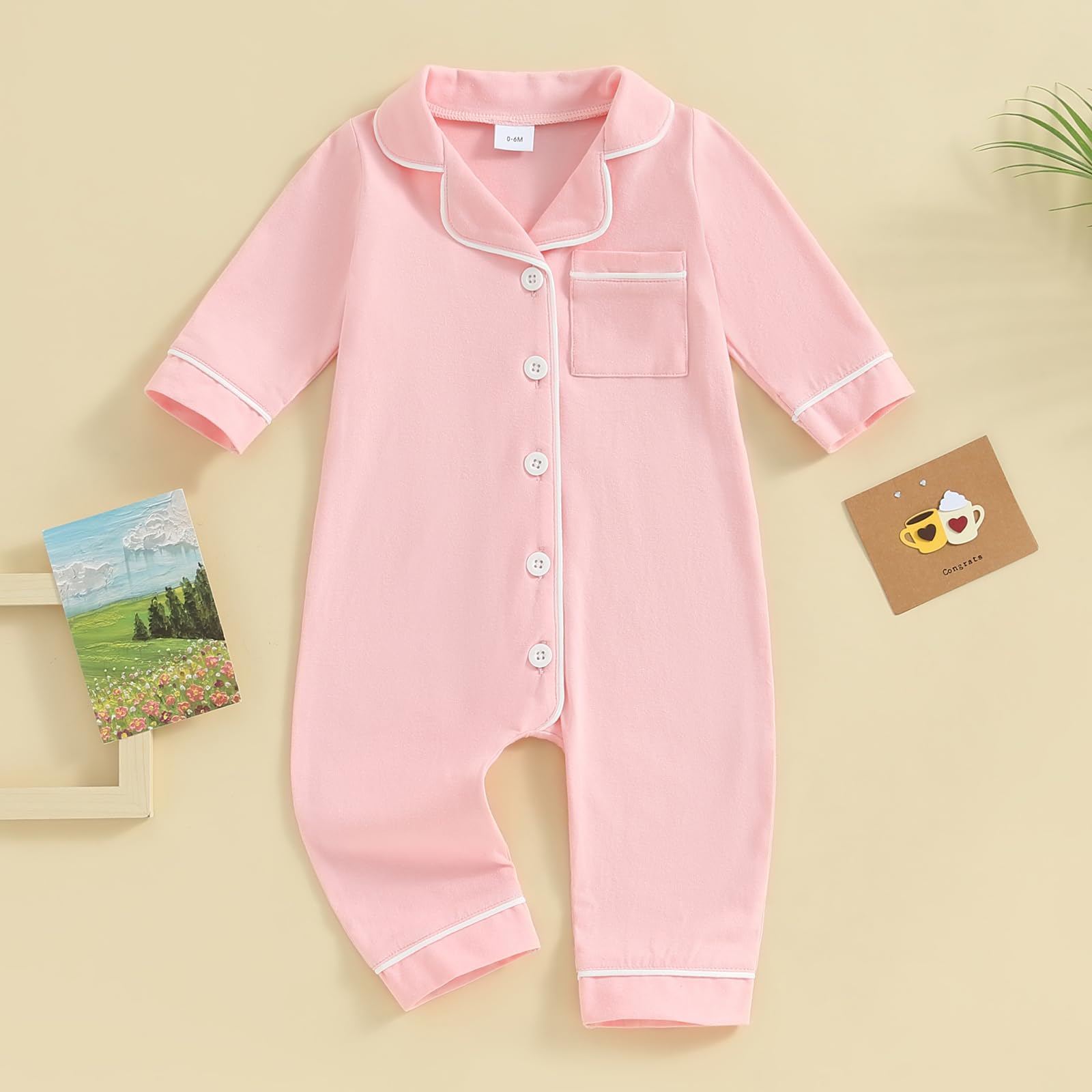 DESIGN: Baby sleepwear bodysuits, baby solid color pajamas, newborn one piece pajamas, baby pajama jumpsuit use patchwork, turn-down collar, with a pocket, long sleeve, button down closure, easy dress on/off, making it a convenient choice for busy parents.