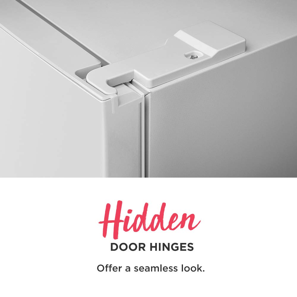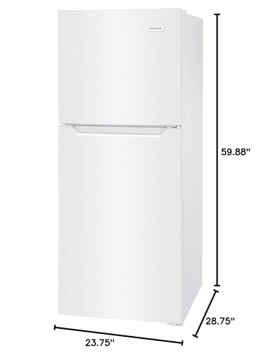 The Frigidaire 11.6 Cu. Ft. Top Freezer Refrigerator in white is great for smaller kitchens with a compact size, measuring 23.75”w x 28.75”d x 59.875”h. Depth with door open 90 degrees is 50.75”. This refrigerator has a sleek, seamless look with hidden door hinges and the door can be installed to open left or right based on your needs. It's easy to keep food organized with 2 adjustable glass shelves, 2 clear crisper drawers, clear door storage bins, and bright LED interior lighting. The freezer has 1 adjustable glass shelf and 2 clear door bins. The electronic temperature controls make it easy to adjust the temperature and provide more precise temperature control than a knob. Refrigerator is ENERGY STAR Certified, CSA Listed, and ADA Compliant.