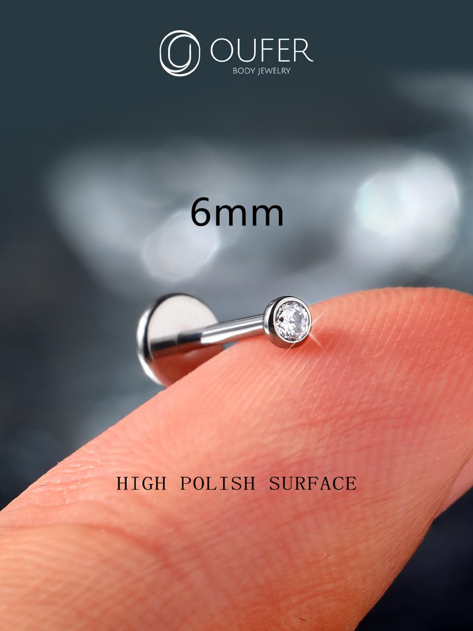 【Standard Noes Studs Size】: Gauge = 20g(0.8mm), bar length = 6mm(15/64''), diameter of CZ = 2mm. The flat back studs are normal and standard size for nose nostril piercing jewelry.