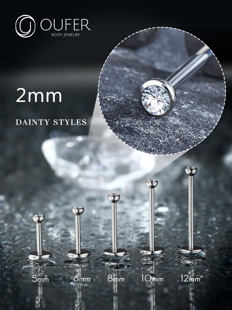 【Exquisite 2MM CZ Design Studs Silver】: This threadless nose studs earrings flat back with CZ boasts an exquisite design, paired with dazzling sparkling CZ, offering a blend of simplicity and elegance.