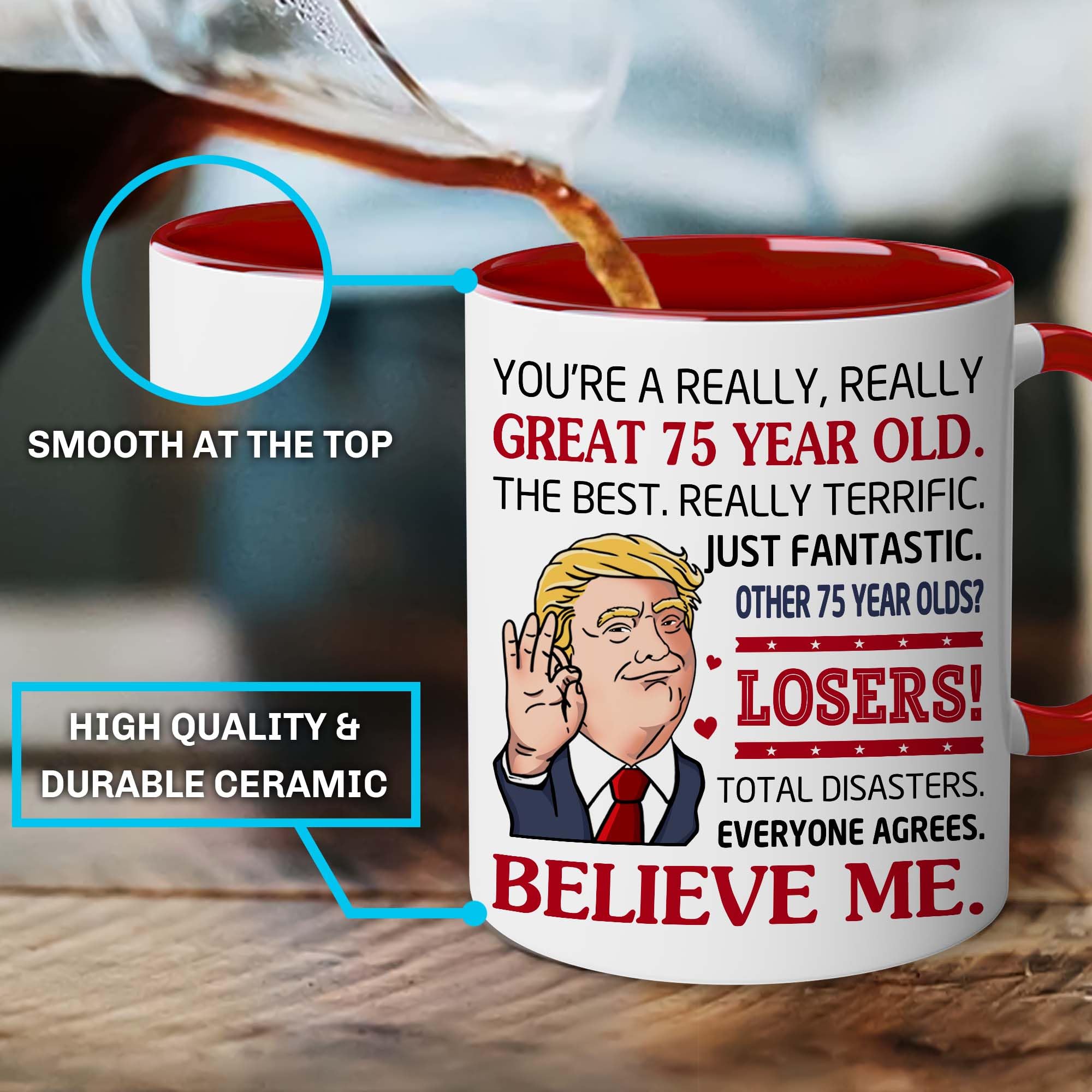75th Present Ideas: Whether you're searching for 75th birthday gifts for women, 75th birthday gifts for men, or a birthday present for a 75 year old man, this themed mug is a thoughtful and meaningful choice.