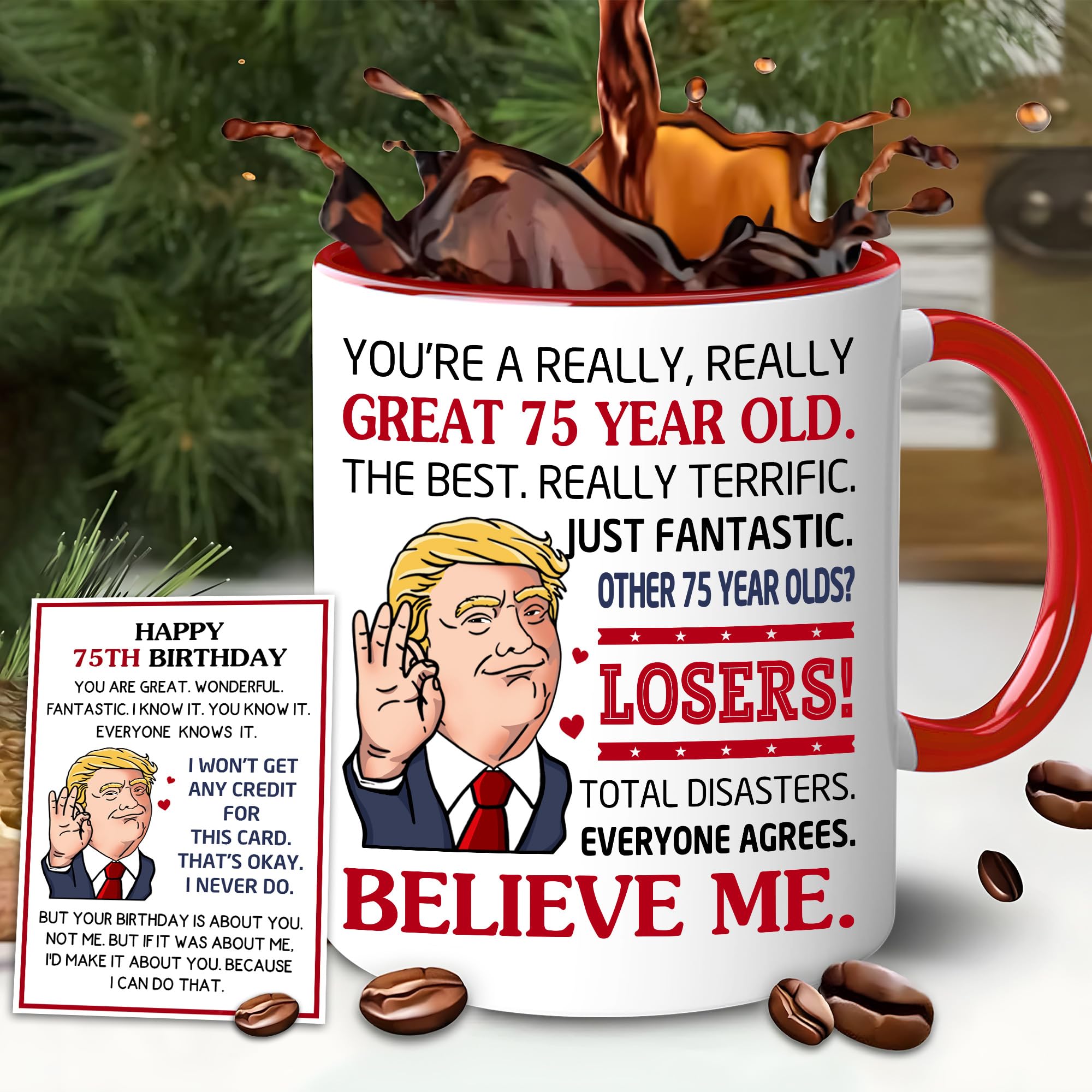 75 Years Old Coffee Mug: Designed to last, this mug is a great 75 year old birthday gift for men or women who enjoy their favorite drinks daily. 11 oz capacity is perfect for coffee, tea, hot chocolate, and more. The sturdy handle ensures a comfortable grip, ideal for both busy mornings and relaxed evenings.
