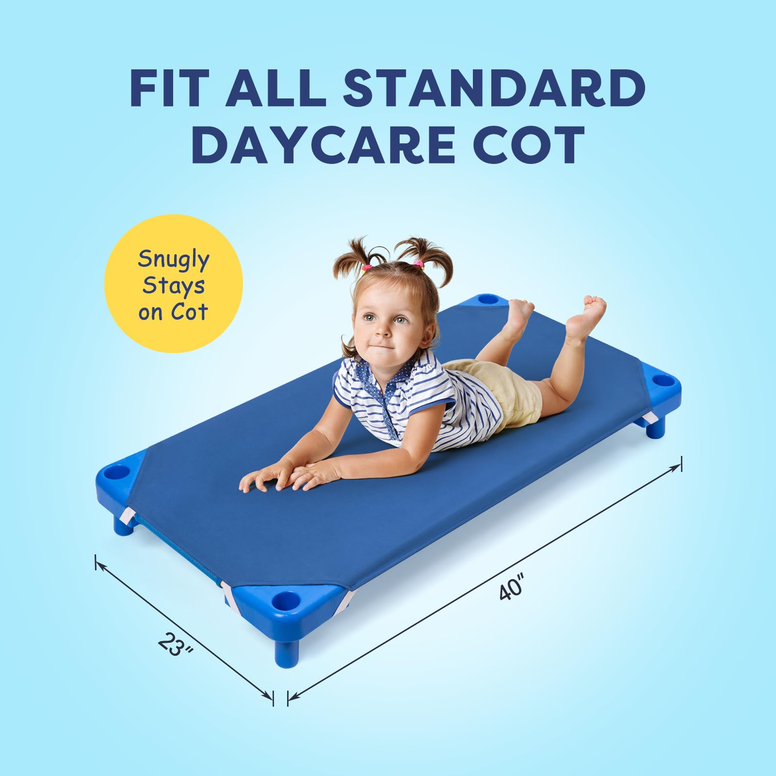 Fits Standard Size Daycare Cot: Measures 23"W by 40"L, our cot sheets for daycare fits standard size daycare cot, pre-school cot, toddler nap sleeping time cot