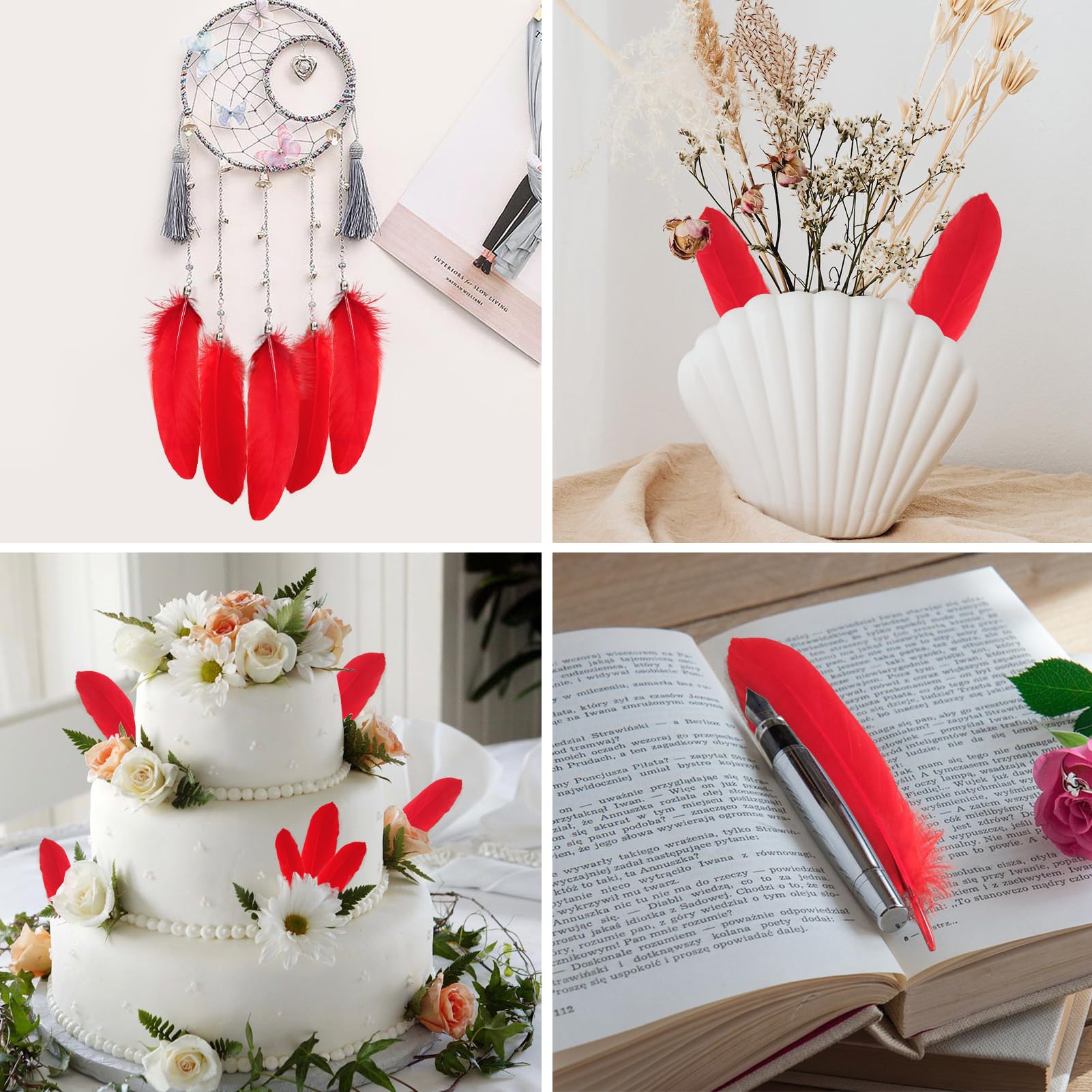 🦢 Applications: Bulk Goose feathers are perfect for wedding centerpiece, thanksgiving craft, feather garland,cake top decor ,Gatsby Party,masquerade decor etc. Luxurious feathers will make your party more beauty and romantic.