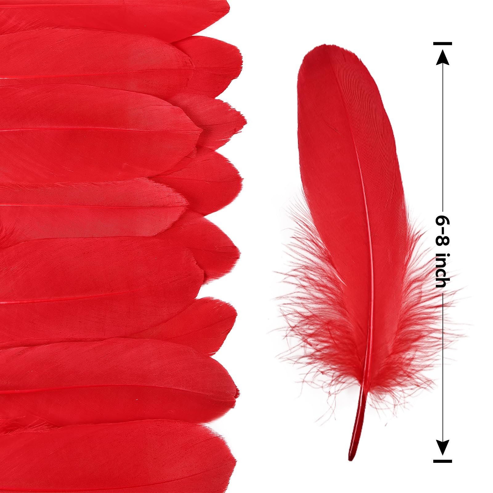 🦢Product Specifications:length:6-8inch,15-20cm long.All Goose feathers are pure natural, Because all feathers are natural, there maybe slight deviations in size, length, and shape.