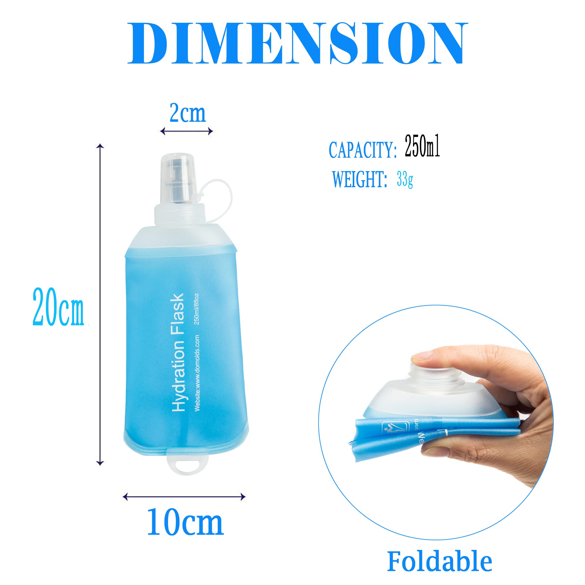 Foldable running water bottle is easy to carry whenever empty or full. It is ideal for hydration running vest and hydration waist belt. Soft flask can be used by adults and children, men and women