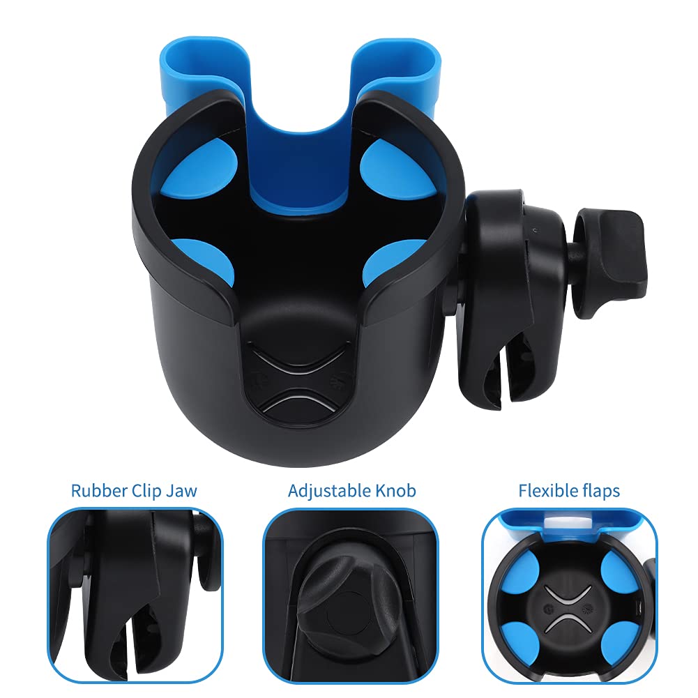 Easy to Use: This stroller cup holder attachment is made of durable materials. The ABS plastic and slip resistant rubber ensure the bottle keep steady even on the rough road. It is a "clip on" cup holder, you just need to clamp on anywhere you like. Easy to install or remove.
