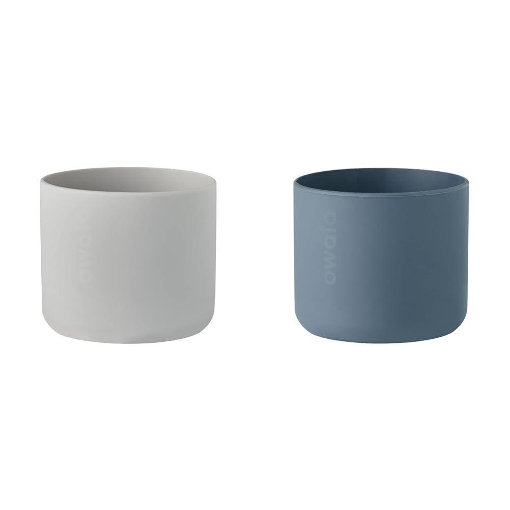This bundle includes two Owala silicone water bottle boots in grey and blue colors to protect and personalize your 24oz FreeSip or Flip stainless steel water bottles. The anti-slip silicone sleeves fit snugly around the bottles, guarding against scratches and dents while providing a soft grip. With bright color options to mix and match with your favorite bottles, these protective boots complement your Owala water bottles in both form and function. The sleeves are dishwasher safe for easy cleaning.