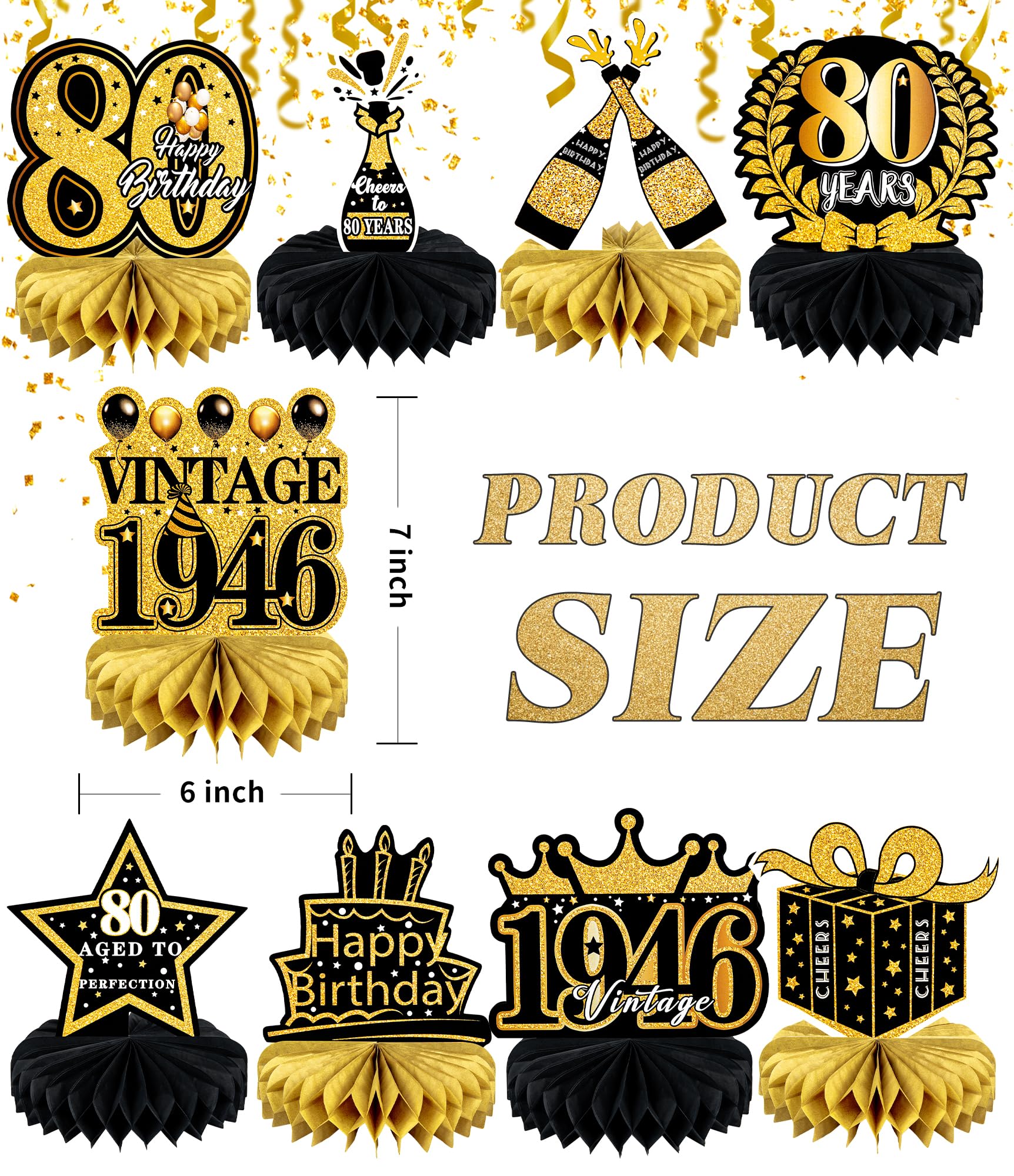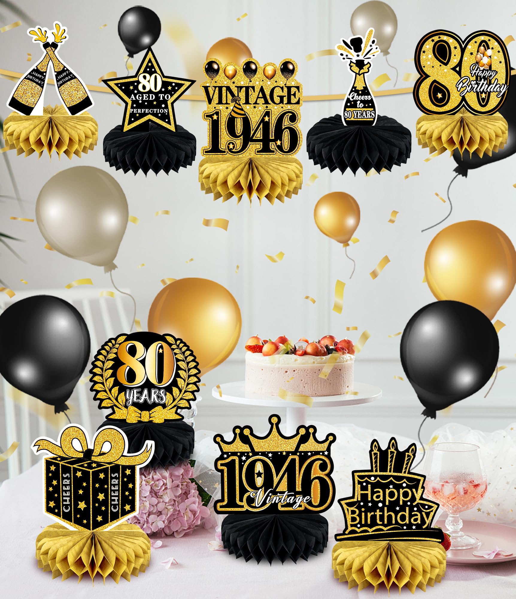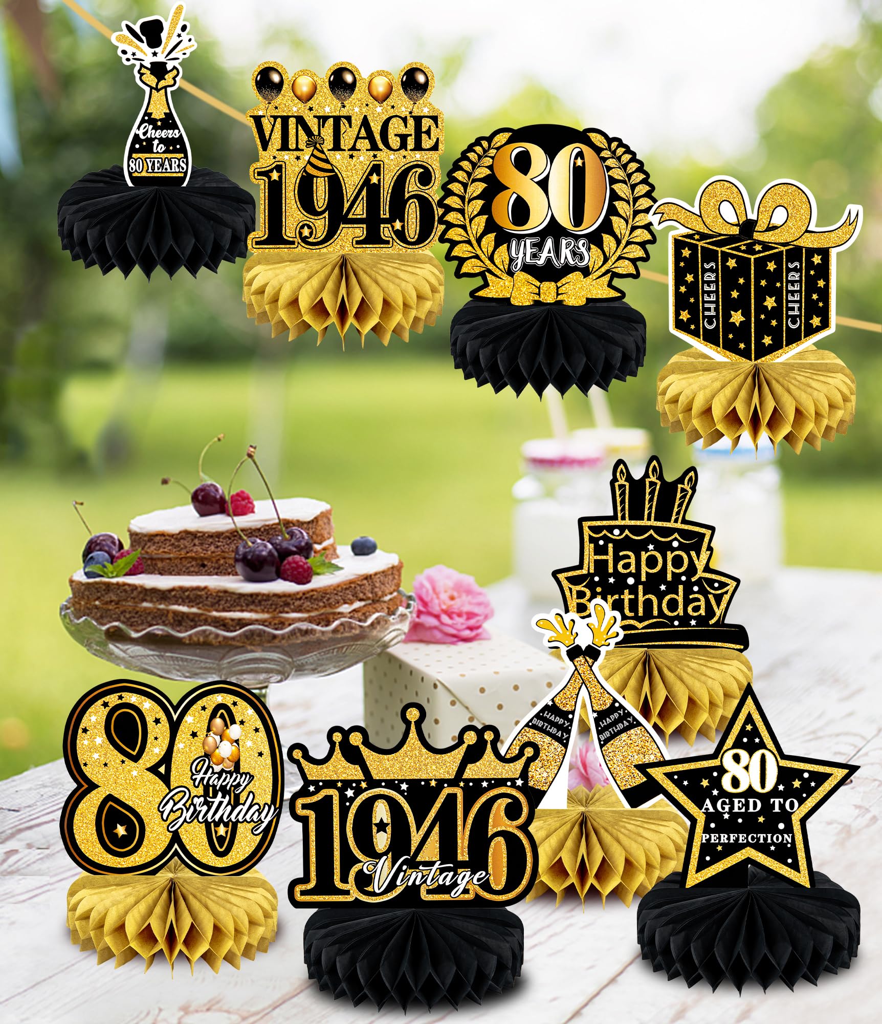 π80th BIRTHDAY PACKAGE INCLUDES: Our 80th birthday decorations for men women including 9 patterned cardboard and 9 paper honeycombs. These decorations exquisitely designed with interesting birthday elements. It is very suitable as a decoration for your 80th birthday table decorations, you can place it on the table or hang it with a clip